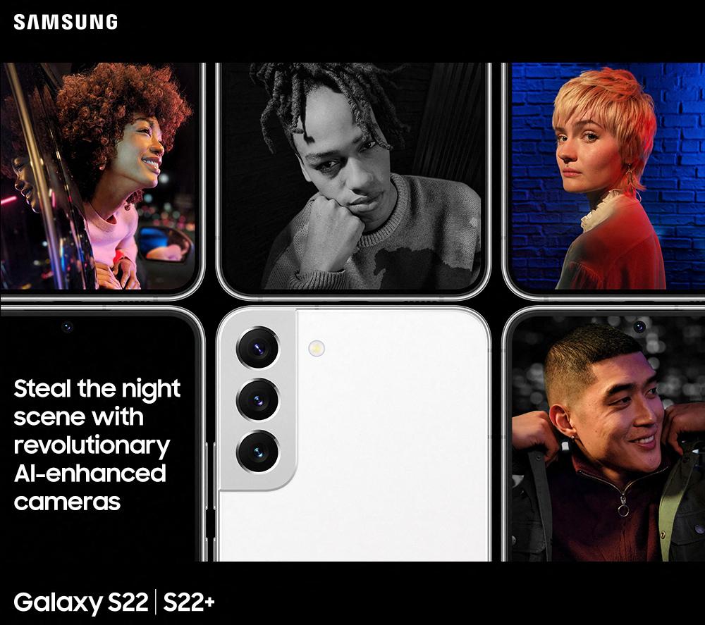 The Galaxy S22+ is packed full of top-tier specs. With an eye-catching 120 Hz AMOLED screen, a razor-sharp triple camera and ultra-fast 5G connectivity you'll have all the latest features at your fingertips.What we love- The Full HD+ AMOLED display is super bright and it can change its refresh rate to match your content, so whatever you're watching will look sharp and smooth, even in bright sunlight- With the triple rear cameras you'll never miss another photo opportunity – it's lightning fast and you can take beautiful photos day and night- The new Exynos 2200 processor and 8 GB RAM make everything fast and snappy, so you can listen, play, browse, stream, or do it all at once- 5G connectivity lets you stream films and series on-the-go – even when you're on the bus to workGood to know- You can record video in whopping 8K resolution or in 4K at 60 fps – amazing for filming YouTube videos, Insta Stories or just home videos- The 10 MP front camera lets you take crisp selfies with your friends, and jump on Zoom calls with your family- Facial recognition and fingerprint scanning keeps your personal files safe, secure and for your eyes only- Thanks to the AKG speakers with Dolby Atmos, the movies you watch will sound as good as they'll look- The 4500 mAh battery will easily see you through the whole day, and with fast charging you can top it back up in no time- The phone is waterproof down to 1.5 metres - splashes or rain showers don't need to worry you- With Android 12 and Samsung's new One UI you'll have a clean and friendly operating system that's ready to adjust to your needs- 256 GB of internal storage gives you plenty of space for all your important apps, photos and videos