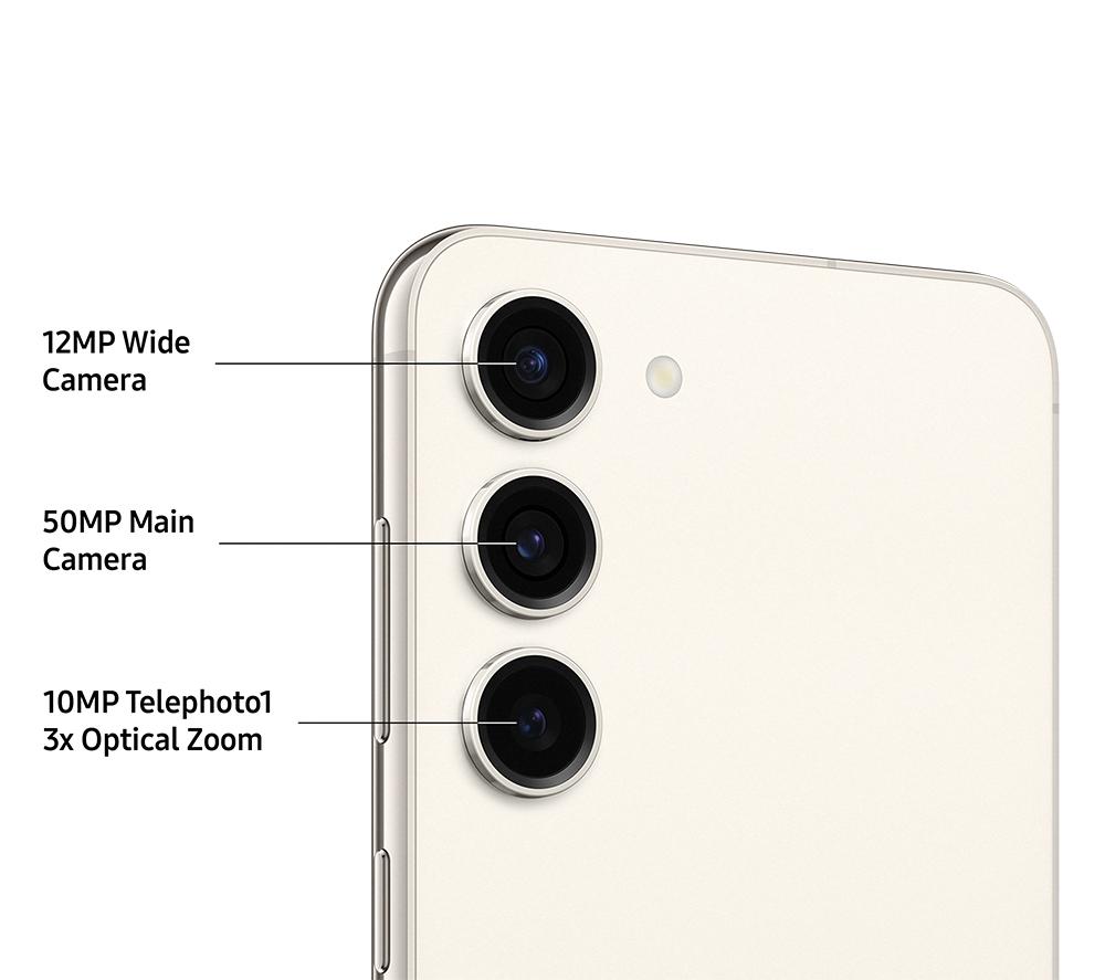 The Galaxy S23's got your back, day and night. With the 50 MP triple rear cameras you can always pick the right lens to get the perfect photo. From super-wide landscapes to tiny details. And because some of the best memories are made after sunset, Nightography lets you take clear pics, even in the dark. The Full HD+ AMOLED display is a treat to look at. Its 120 Hz refresh rate and stunning colours make movies and games come to life in your hands. It's super bright too, so it even looks great in direct sunlight. The massive 3900 mAh battery will make sure you don't run out of juice before the day is over. And to make the S23 even smarter, there's Galaxy AI. It's at your service 24/7 to help with everything from the small things to the big tasks.Good to know- With Photo Assist you can move subjects, remove distractions and so much more with just a few taps- Break down language barriers during calls - Live Translate lets both people speak and hear their own language- Note Assist spits out bite-sized summaries of long articles in seconds, so you can read more in less time- Where's that sweater from? Circle to Search with Google lets you search objects in your photos just by circling them- The Qualcomm 8 Gen 2 Processor will easily power through any app or game- 5G connectivity lets you stream films and shows on-the-go – even when you're on the bus to work- You can record video in whopping 8K resolution or in 4K at 60 fps – your videos have never looked so crisp- The 12 MP front camera is perfect for selfies with your friends, and Zoom calls with your family- Facial recognition and fingerprint scanning keeps your personal files safe, secure and for your eyes only- Thanks to the AKG speakers with Dolby Atmos, the movies you watch will sound as good as they'll look- With 25 W Super Fast Charging and wireless charging, you've got plenty of ways to top up the battery- You can wirelessly charge your gadgets from the phone with Wireless PowerShare- Splashes or rain showers don't need to worry you – the S23 has an IP68 rating