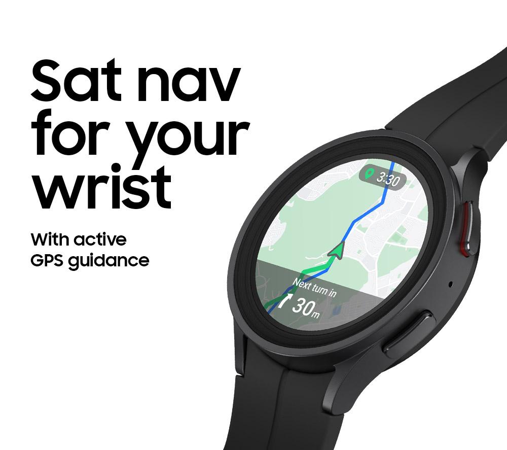 Get off the beaten track – this Samsung Galaxy Watch5 Pro can be your guide as well as your performance coach. The active GPS can provide turn-by-turn navigation on pre-plotted routes, while Track Back is perfect for guiding you back home. With sophisticated fall detection, it can send alerts to emergency contacts if you take a tumble. There are loads of ways to track your health - monitor heart rate and blood pressure, or track sleep and get tips. The titanium frame and tough bezel means that it looks great and is tough enough to last.Good to know- Leave your phone at home thanks to 4G connectivity for calls and updates on the move- Pay for your coffee with your watch – Samsung Pay uses NFC so you can make contactless payments- It's water resistant to 50 m, so don't let rain or splashes put you offPlease note:Fall detection can initiate Emergency call and message if you take a hard fall and don't seem to move. It cannot detect all falls. The more physically active you are, the more likely you are to trigger Fall Detection due to high impact activity that can appear to be a fall. Sending SOS calls and messages requires a network connection and smartphone pairing.