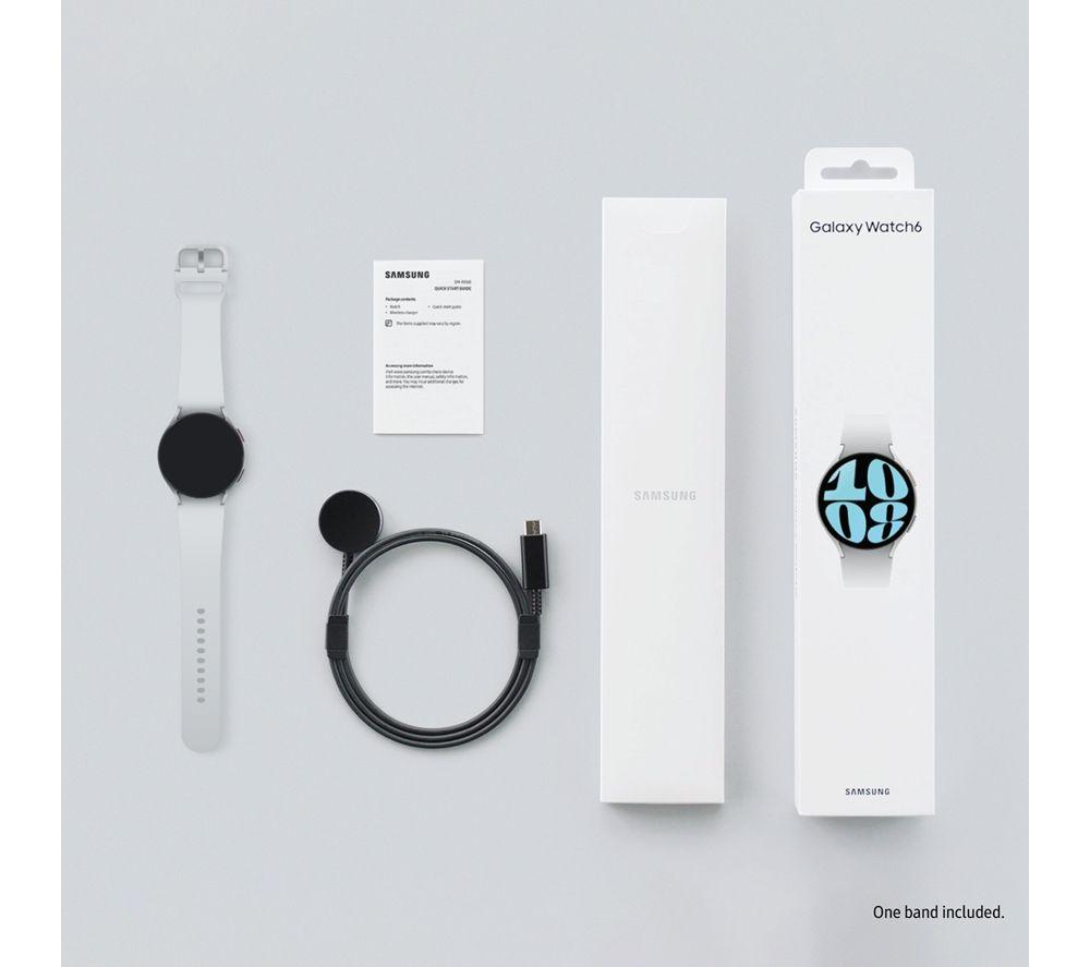 Struggling to catch some Zzzs? Instead of counting sheep, use the sleep-tracking tools on the Samsung Galaxy Watch6 to get you to the land of nod. You'll get tips on how to improve your slumber by measuring how much REM sleep you've had. It will even tell you when you've been snoring. For an all-round picture of your health, it keeps an eye on your heart rate, blood pressure, periods, body composition, and more. And it uses all that data to coach you on your workouts, so you can ace that 10K.Good to know- The Watch6 has a slightly bigger screen and slimmer bezel than the previous version- It's water resistant to 50 metres, so it's safe for swimming or showering- With up to 40 hours of battery life, you won't lose any progress mid-run- There's almost no downtime with Fast Wireless Charging – so you can juice it up while getting ready- A speedy 2 GB of memory makes flipping between apps smooth and quick- Samsung Wallet lets you buy your morning coffee with a tap of your watch- Pair it with your phone to chat handsfree, use your favourite apps, or find your misplaced belongings- Pick your colour and switch it out if you change your mind with interchangeable straps (additional straps sold separately)- Store all your work-out playlists on the 16 GB of internal memory___________________________________________________________________________Please note: Samsung Wallet/Pay is not currently available in Ireland.