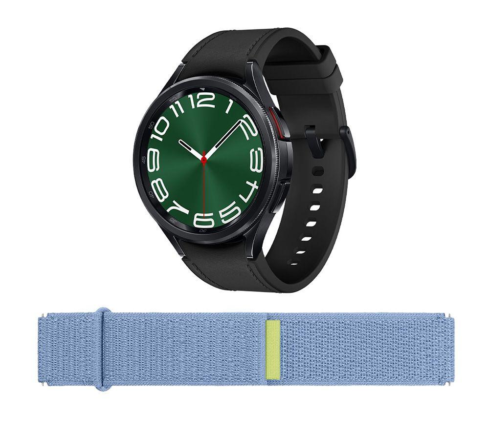 Keep your health in check with this Samsung Galaxy Watch6 Classic BT & Additional Fabric Band Bundle. ___________________________________________________________________________ Samsung Galaxy Watch6 Classic BT with Bixby - Black, 47 mm Struggling to catch some Zzzs? Instead of counting sheep, use the sleep-tracking tools on the Samsung Galaxy Watch6 to get you to the land of nod. You'll get tips on how to improve your slumber by measuring how much REM sleep you've had. It will even tell you when you've been snoring. For an all-round picture of your health, it keeps an eye on your heart rate, blood pressure, periods, body composition, and more. And it uses all that data to coach you on your workouts, so you can ace that 10K. It looks the part too. Made from stainless steel with a sapphire crystal glass display, it's both beautiful yet tough. Use the rotating bezel to smoothly scroll through menus and make the most of the larger display and slimmer design (vs the Watch5). Good to know - It's water resistant to 50 metres, so it's safe for swimming or showering - With up to 40 hours of battery life, you won't lose any progress mid-run - There's almost no downtime with Fast Wireless Charging – so you can juice it up while getting ready - A speedy 2 GB of memory makes flipping between apps smooth and quick - Samsung Wallet lets you buy your morning coffee with a tap of your watch - Pair it with your phone to chat handsfree, use your favourite apps, or find your misplaced belongings - Pick your colour and switch it out if you change your mind with interchangeable straps (additional straps sold separately) - Store all your work-out playlists on the 16 GB of internal memory ___________________________________________________________________________ Samsung Wide Fabric Galaxy Watch Band - Blue, Medium / Large - Switch your Galaxy Watch strap out for this wide band to complement your outfit - You can swap the watch bands in seconds - all it takes is one click of a button - Fan of night walks? You're set! It's made with reflective fiber. so you'll be clearly visible - The soft finish makes it comfy to wear even while you're sleeping ___________________________________________________________________________ Please note: Samsung Wallet/Pay is not currently available in Ireland.