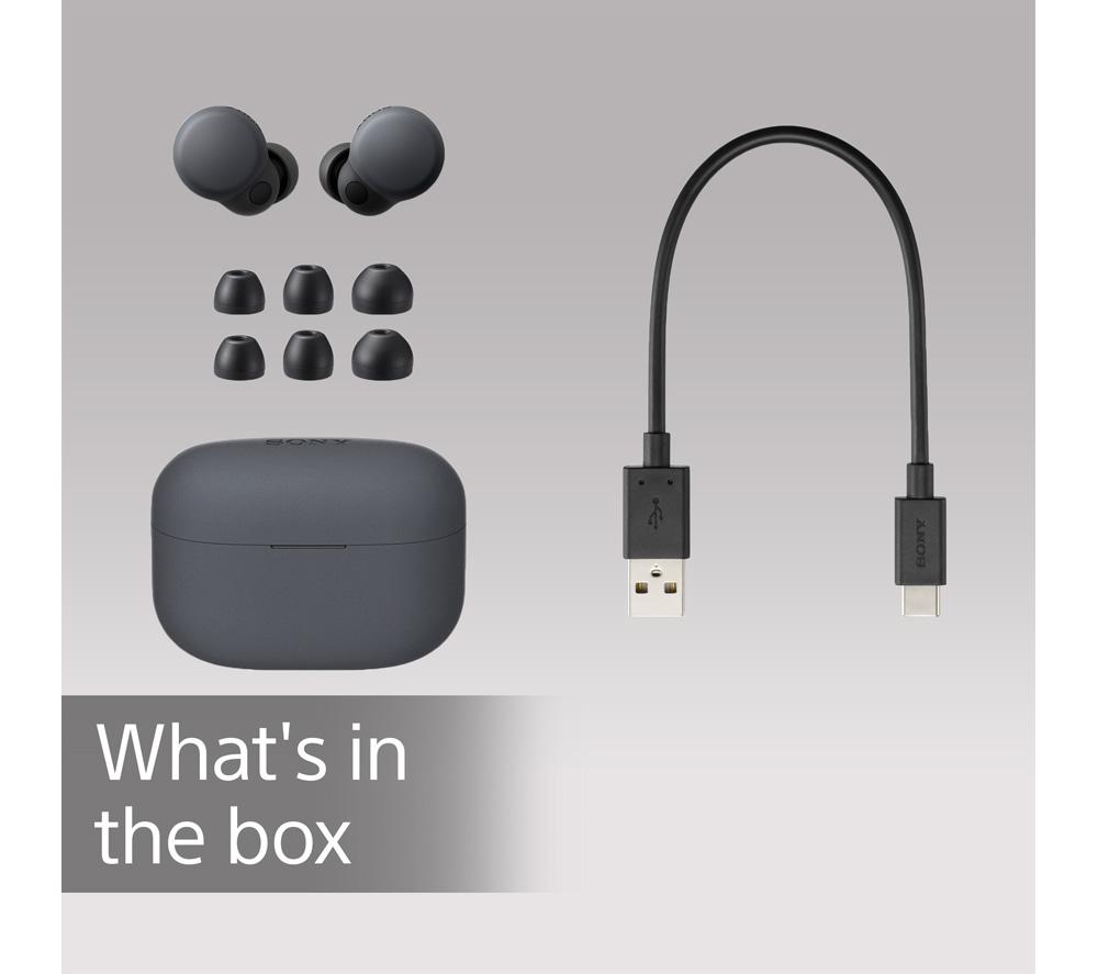 • Box contents :- Sony LinkBuds S Wireless Bluetooth Noise-Cancelling Earbuds- USB Type-C cable- Charging Case- Hybrid silicone rubber earbuds- Reference Guide- Warranty Card