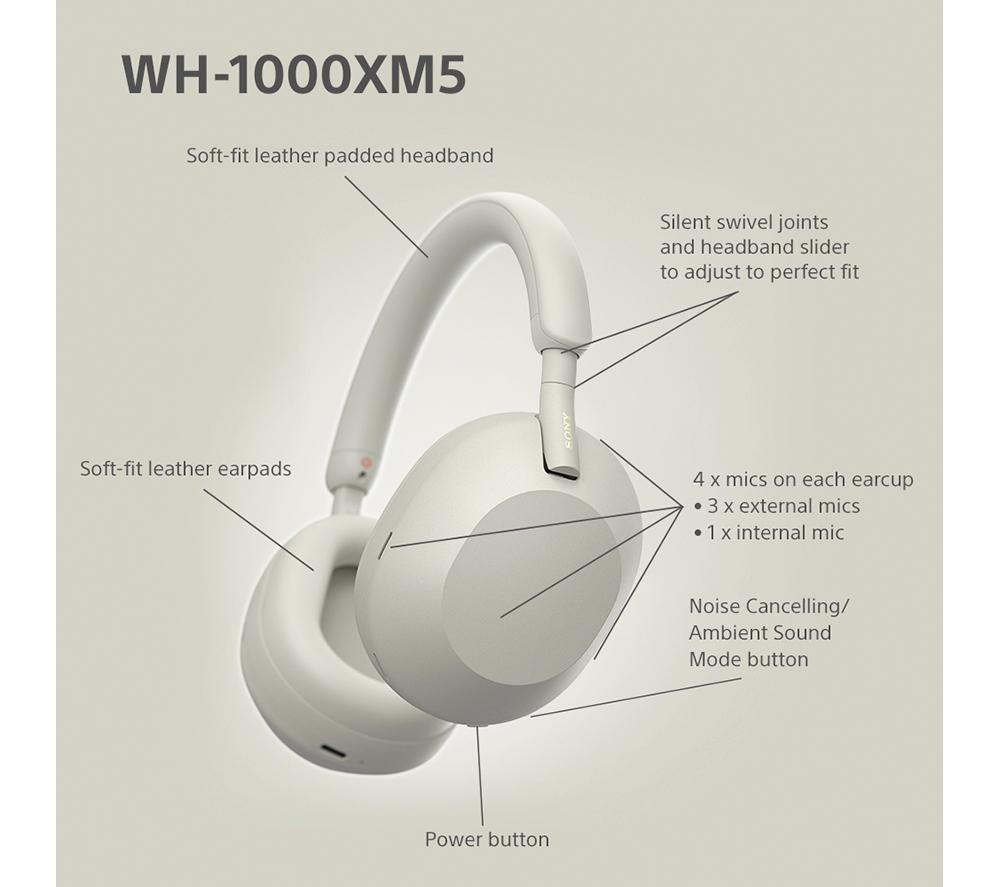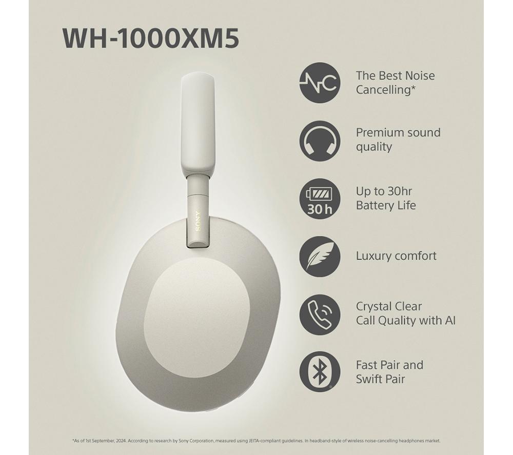 SONY WH-1000XM5 Wireless Bluetooth Noise-Cancelling Headphones - Silver