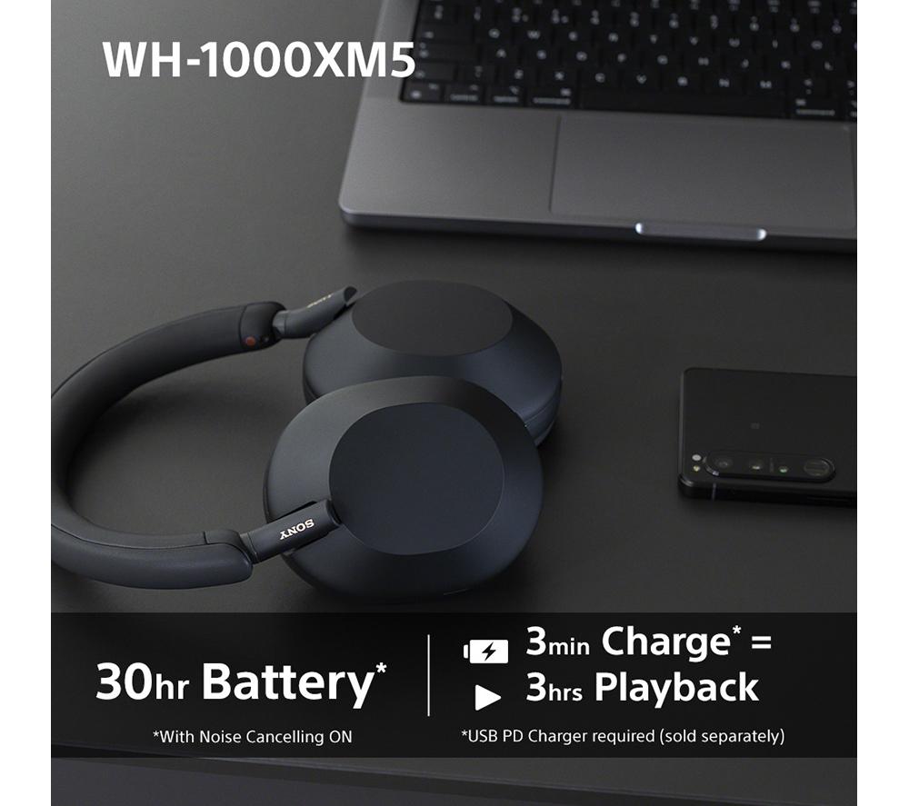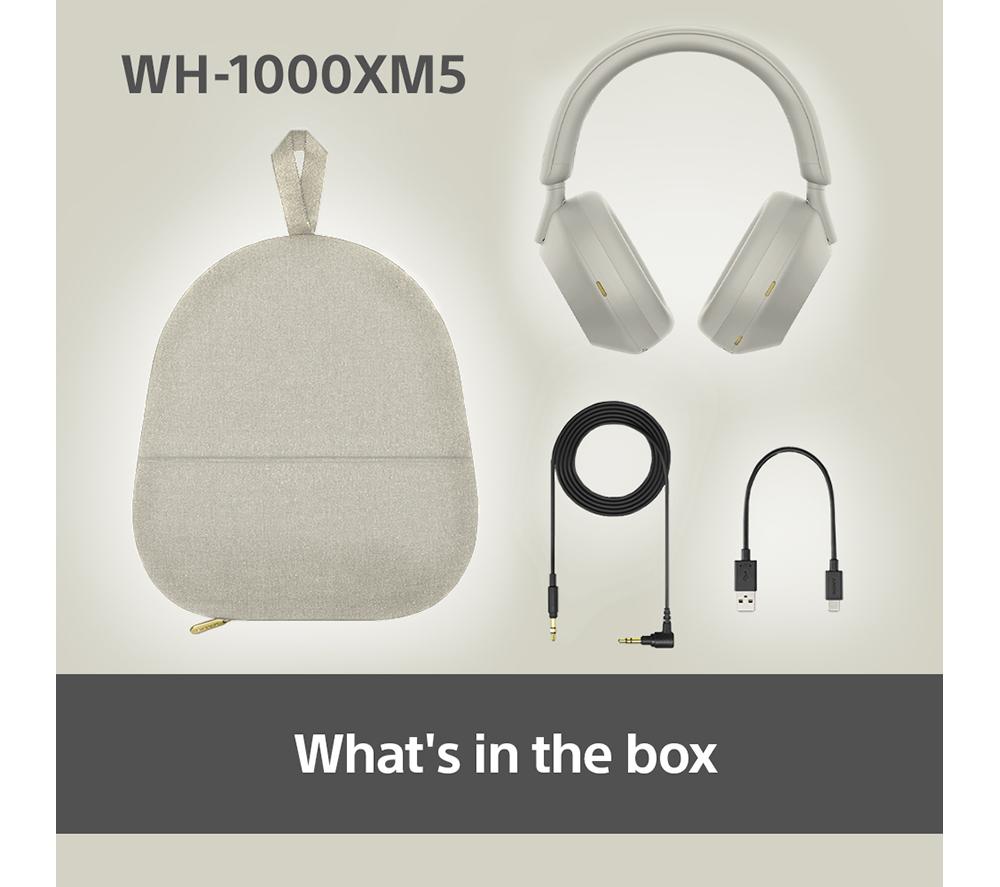 • Box contents :- Sony WH-1000XM5 Wireless Bluetooth Noise-Cancelling Headphones- Carrying case- Connection cable- USB cable- Warranty card- Reference guide