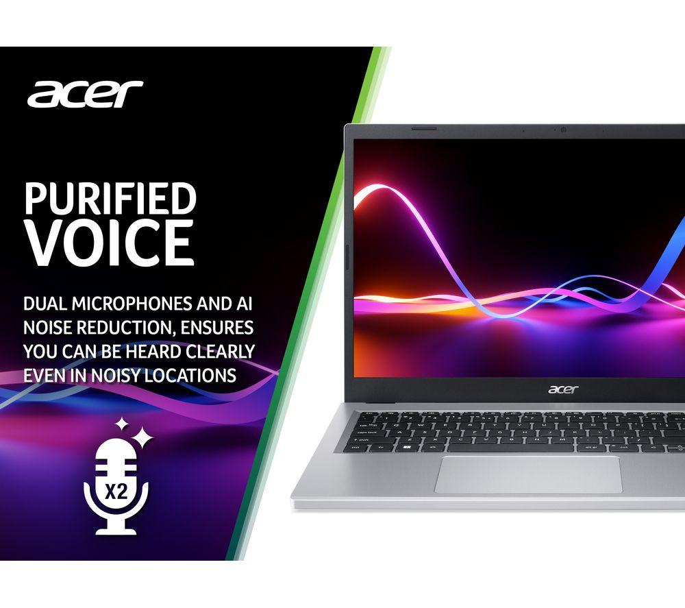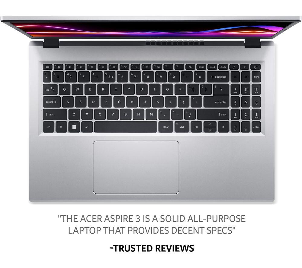 Browsing the web, working on a Word doc or just checking your emails? The Acer Aspire 3 is powered by an octa-core Intel® Core i3 processor, so it's ready for your everyday computing. It supports WiFi 6 for a super-fast and reliable wireless connection. And you don't even need to worry about finding a socket. With up to 10 hours of battery life, you have loads of time to get everything done. Good to know - The Full HD display has plenty of detail and contrast, so you can enjoy your shows and movies - 8 GB of RAM means you can multitask without being slowed down - You can hook up accessories and high-res monitors – there's HDMI 2.1, USB Type-C and other ports ___________________________________________________________________________ Intel, the Intel logo, Celeron, Intel Atom, Intel Core, Intel. Experience What's Inside, Intel Inside, the Intel Inside logo, Intel Unite, Iris, Pentium, Thunderbolt, the Thunderbolt logo, and Ultrabook are trademarks of Intel Corporation in the U.S. and/or other countries.