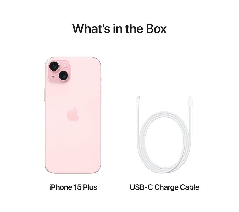 • Box contents :- Apple iPhone 15 Plus- USB-C charging cable x 1- Documentation