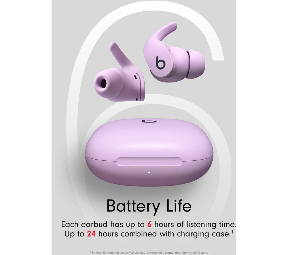These Beats Fit Pro earbuds are the perfect companion for your active lifestyle. Music, videos, and games feel super immersive thanks to Spatial Audio with dynamic head tracking – it adjusts the sound as you turn your head, giving you the feeling of being at a concert. The flexible secure-fit wingtips are flexible will stay put during even the most intense workouts. Dive into your favourite playlists and podcasts undisturbed with active noise-cancelling which blocks out your surroundings. And when you need to listen out for your platform announcement, switch to Transparency mode to let the outside world in.Good to know - They're powered by the Apple H1 chip – effortlessly sync with all your Apple devices and go hands-free- They have 6 hours of listening time with 3 extra charges in the charging case- A 5-minute Fast Fuel charge will give you up to 1 hour of playback when you need a little extra juice – perfect for when you're heading out the door- You'll always be heard loud and clear on your calls thanks to dual beamforming mics which pinpoint your voice and cut out external noise and wind- The Beats app lets you manage one-touch pairing, customise the controls, check the battery levels and more.- On-device controls let you manage your music, toggle listening modes, take calls and active your voice assistant- The sweat and water-resistant design makes them perfect for workouts\n______________________________________________________Please note:- Compatible hardware and software required for Spatial Audio. Works with compatible content in supported apps. Not all content available in Dolby Atmos. Head tracking feature requires iPhone or iPad.- One-touch pairing requires an iCloud account and macOS Sierra, iOS 10, watchOS 3 or later versions.- Automatic Switching requires macOS 11.1, iOS 14.3, iPadOS 14.3, watchOS 7.2, or tvOS 14.3 or later.- Audio Sharing is compatible with Beats Fit Pro, Beats Flex, Solo Pro, Powerbeats Pro, Powerbeats, Solo3 Wireless, Powerbeats3 Wireless, Beats Studio3 Wireless, BeatsX, AirPods (1st generation or later), AirPods Pro and AirPods Max. Works with iPhone 8 or later and iPod touch (7th generation) with the latest version of iOS, and 12.9-inch iPad Pro (2nd generation or later), 11-inch iPad Pro, 10.5-inch iPad Pro, iPad (5th generation or later), iPad Air (3rd generation) and iPad mini (5th generation) with the latest version of iPadOS.