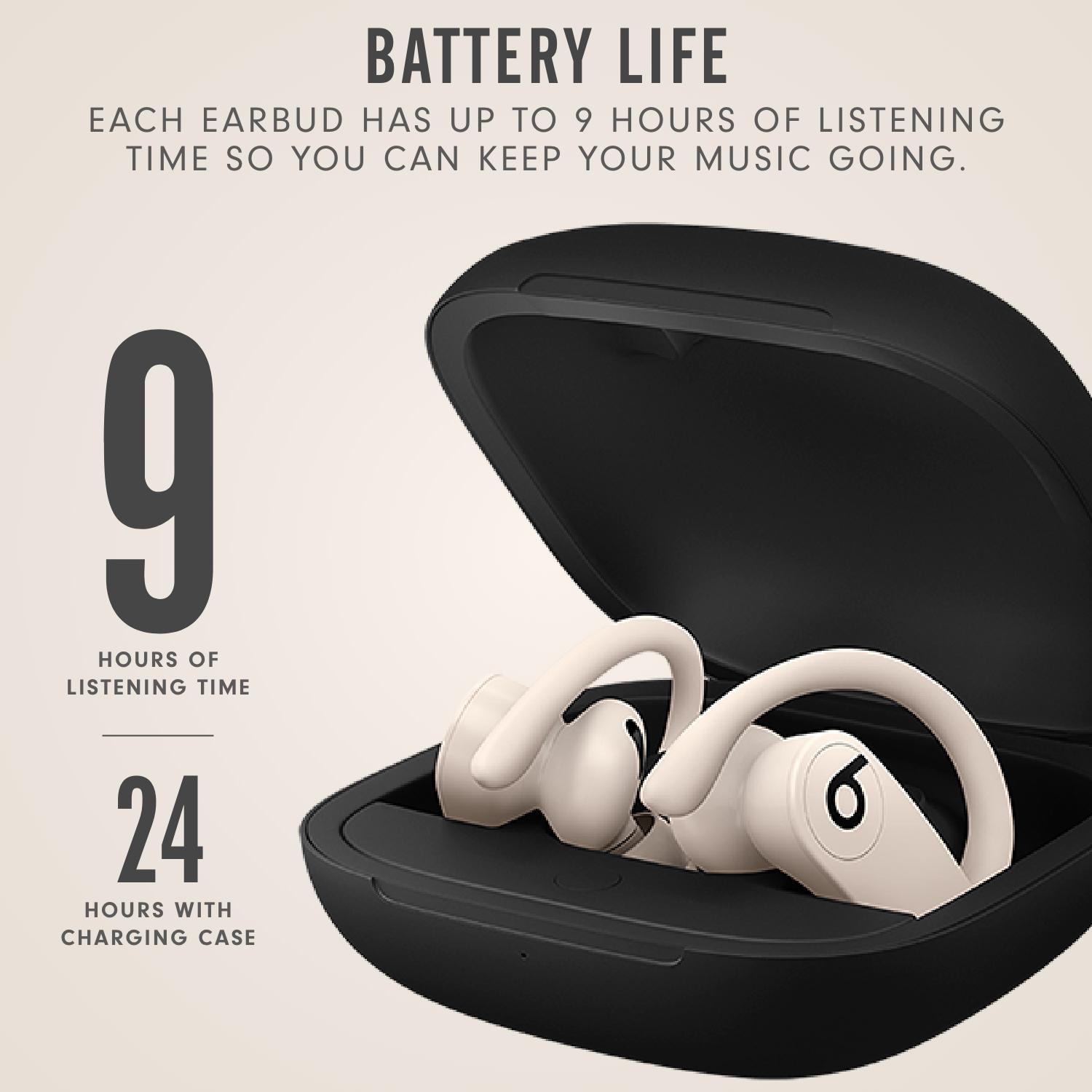 Give it your allWorkout without anything holding you back. The Beats Powerbeats Pro Wireless Bluetooth Sports Earphones are completely wireless, so you've got the freedom to move. Premium Bluetooth technology means a better range and fewer dropouts.Built for elite athletes, they've got secure earhooks that can be customised, so you can find your fit. And with a sweat/water resistant design, you can really push yourself.Quality soundBeats spoke to real athletes who said quality sound was their biggest priority. And that's just what you get from the Powerbeats Pro – powerful, balanced audio with better dynamic range.Seamless controlWith full volume and track controls on each earbud, you won't need to reach for your iPhone each time. Auto sleep/wake means they start right where you left off as soon as you pop them in your ears.Setup is easy and seamless across all your devices. iPhone, iPad, Apple Watch, Mac – they just work.All-day batteryTo see you through the longest sessions, Powerbeats Pro have a up to 9 hours of playback with an added 24+ hours from the wireless charging case.In a hurry? Just 5 minutes of charging gives 1.5 hours of juice when you're running low.Siri to the rescueNeed something to motivate you? Simply say “Hey Siri” for your voice assistant whenever you need it – request a playlist, find out what the weather's like tomorrow, get directions. It's quick and convenient.