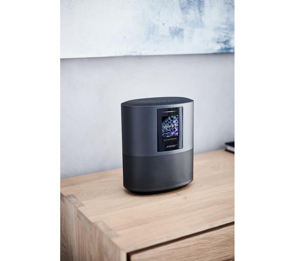 Top features: - Wall-to-wall sound from a single speaker - Google Assistant & Amazon Alexa built-in - Simple control via voice, touch, or app - Modern design to fit with your living space - Create a multi-room setup with other Bose speakers Wall-to-wall soundKick back with your favourite album, turn up the volume on your go-to party playlist, or discover something new from an internet radio station - it all sounds great on the Bose Home Speaker 500.By firing audio in all directions, you get powerful, room-filling sound that'll make you feel like dancing.Google Assistant & Amazon Alexa built-inPlaying your favourite tunes couldn't be easier. The Bose Home Speaker 500 has Google Assistant and Amazon Alexa voice control built-in, so it's as simple as saying \