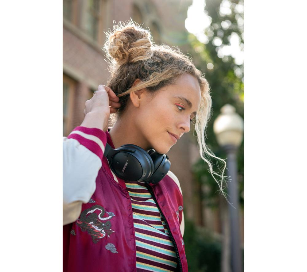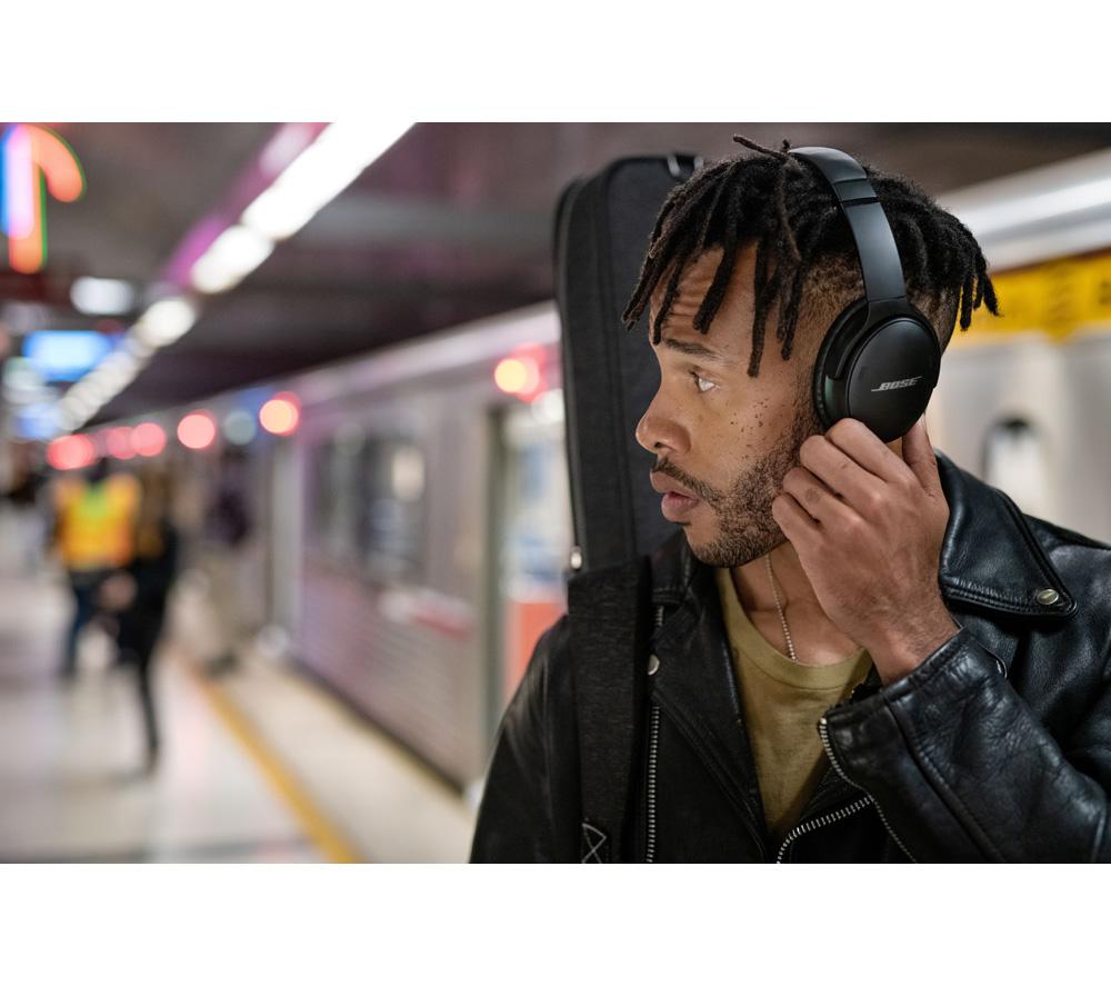 It's no secret that Bose knows noise-cancelling and on the QC45s it gets even better. There are now six external mics to measure and cancel noise. Perfect for blocking out noisy neighbours while you work from home. There's even a noise-rejecting mic that isolates your voice from environmental sound so you can take calls in noisy surroundings. And when someone needs your attention or you're about to cross the street, simply press the aware mode button - you'll immediately hear everything loud and clear.Good to know- You'll get around three full work days from the 22 hour long battery - so don't stress about charging every day- No battery for the bus home? No worries - a 15 minute quick charge gives you 3 hours of use- Bluetooth 5.1 has great range and is super stable against interference from other devices- To hear your in-flight movie properly, just plug in the included 3.5 mm adapter cable- The volume-optimized Active EQ boosts highs and lows to give great audio quality no matter the volume- Music and podcasts will sound rich and true to life thanks to the TriPort acoustic design- The physical button controls on the earcups are tried, trusted and easy to use- There's a clue in the name... the QC's soft, lightweight materials are designed for all-day comfort- It's easy to switch between Bluetooth sources, adjust the EQ and more on the free Bose Music app