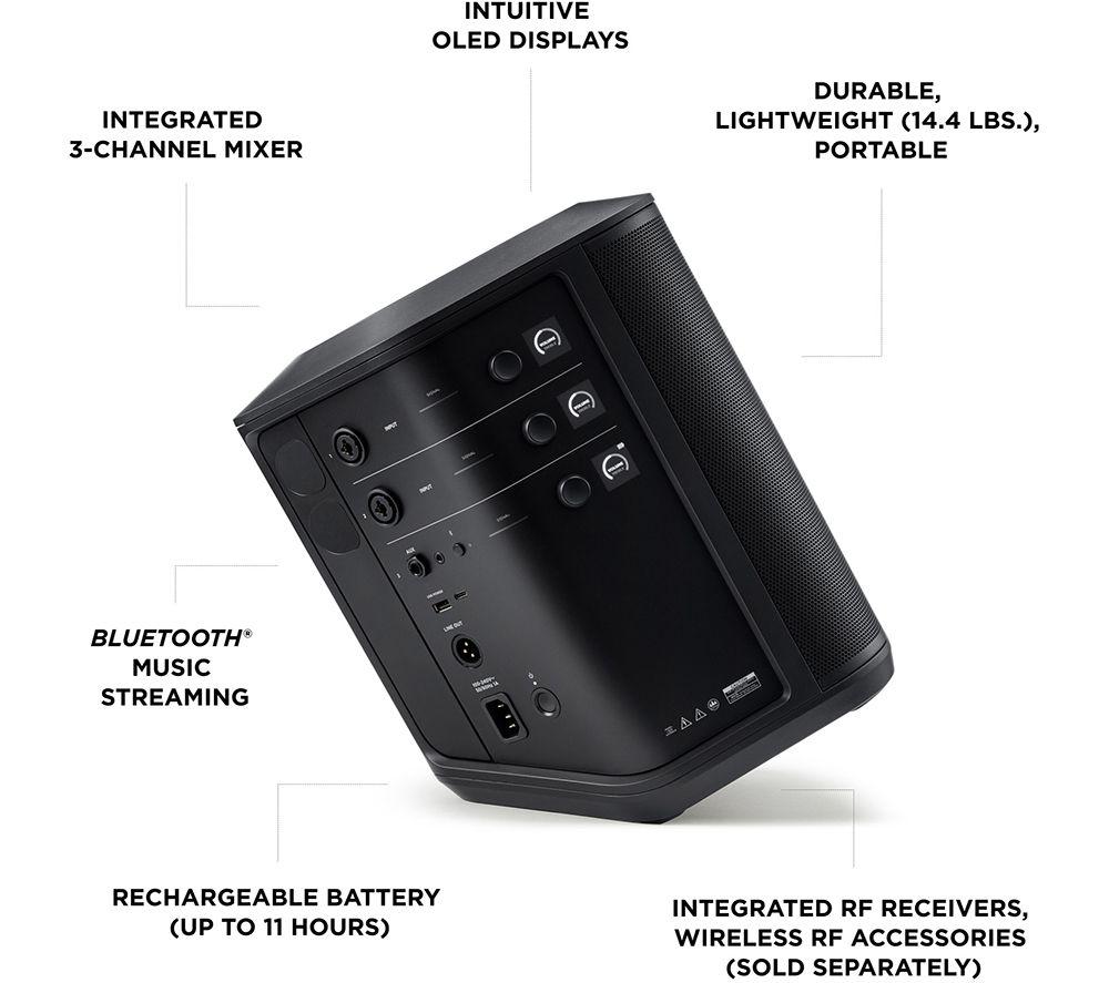 • Other features :- Compatible with Bose S1 Pro+ wireless transmitters- Carry handle- 4 positioning options