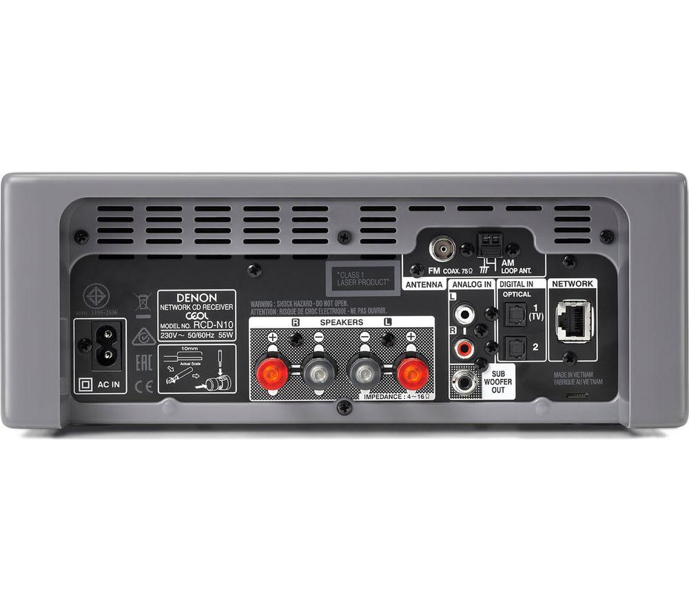 Top features: - Listen your way with this compact mini Hi-Fi system - Stream wirelessly & share music with multi-room sound - Handsfree control with your Alexa or Google Assistant speaker Listen your wayWhether you want to stream a playlist from your smartphone, catch the Top 40 on the radio, enjoy a classic album, or plug in a USB packed with your favourite tunes, you can do it all with the Denom CEOL N10 Wireless Smart Sound Hi-Fi System.With support for High-Resolution Audio files, you can experience your music at it's best. Hear finer details, enjoy deeper bass, and get sound that's closer in quality to the real thing. Compact in size, the Denom CEOL N10 will fit comfortably into smaller spaces - perfect for your home office, kitchen counter, or living room. Stream wirelesslyWith Bluetooth, WiFi, and Apple AirPlay, it's easy to connect and start listening wirelessly, even if your music library is spread across your smartphone, laptop, and iPod.You can even listen to the same music throughout your home. With the HEOS network, you can group up to 32 HEOS speakers for synchronised playback through every speaker - so you can keep listening as you move from room to room.There's also two optical inputs, so your movies, shows and other TV content can get an audio upgrade too.Handsfree controlFor times you want to adjust the volume or skip a song but you've got your hands full in the kitchen, the CEOL N10 Hi-Fi System works with Amazon Alexa or Google Assistant voice control. So if you've already got an voice controlled speaker such as the Amazon Echo or Google Home (both sold separately), you can control your music handsfree.