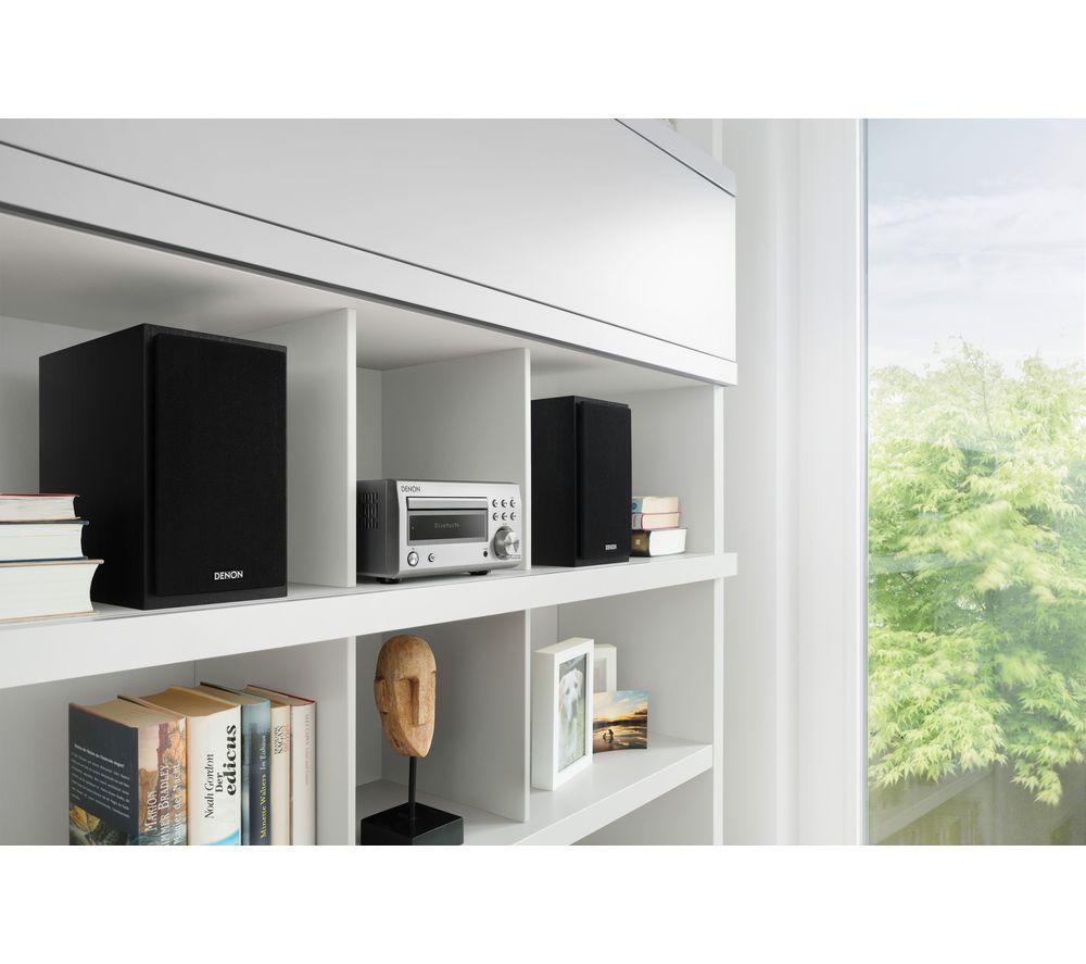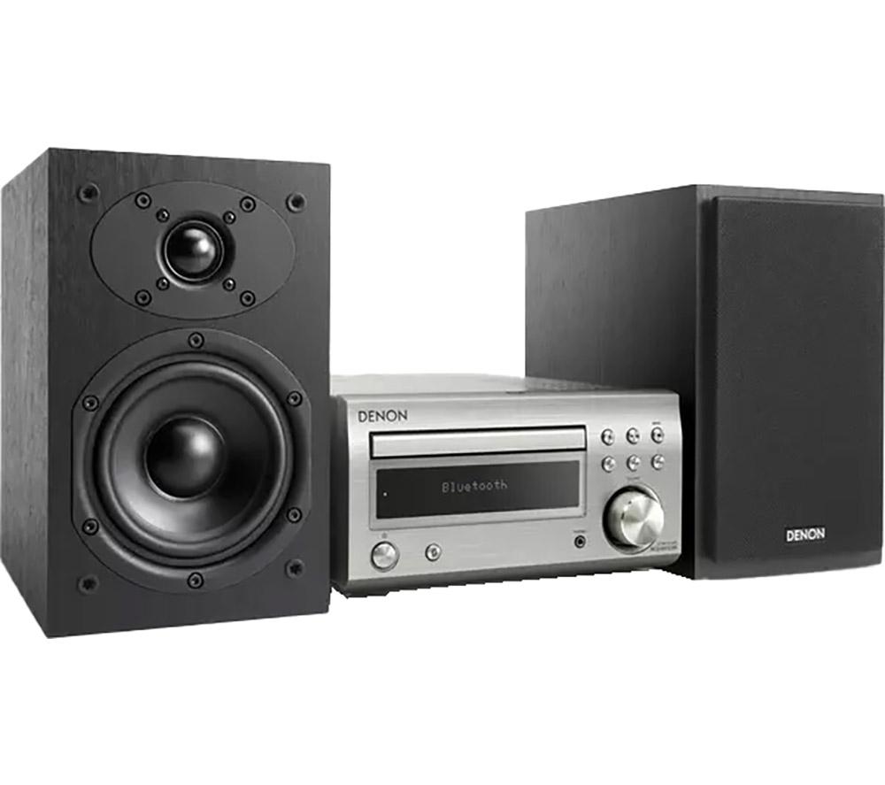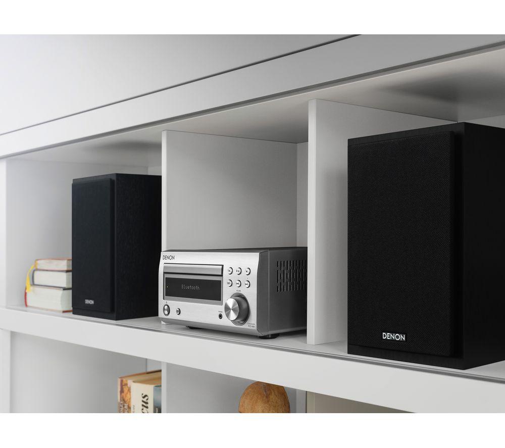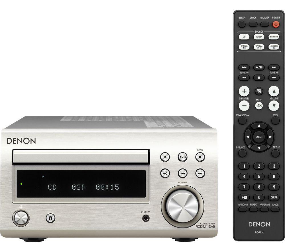 Top features:- Powerful 60 W sound from a small hi-fi system - Listen to CDs, and FM and DAB+ radio stations - Stream music wirelessly from your smartphone or tablet - Purer sound thanks to a Triple Noise Reduction Design Powerful 60 W soundIf you're running low on space but still want big sound, you'll love the Denon DM-41DAB Wireless Traditional Hi-Fi System. It delivers a powerful 60 W of audio from two speakers, for sound that fills small and medium-sized rooms. You'll be surprised at how loud a small hi-fi can be.Listen to CDs, and FM and DAB+ radioExpand your music options with multiple ways to listen. This hi-fi system has a CD player and FM, DAB and DAB+ radio stations to listen to.Stream music wirelesslyBuilt-in Bluetooth means you can wirelessly stream music from your smartphone, tablet or PC. So you're not just restricted to your CD collection, or what's on the radio.Purer soundThe Denon DM-41DAB is designed for purer sound from within. A simple circuit design inside the hi-fi lowers noise reduction. This means cleaner, pure sound at high volumes.