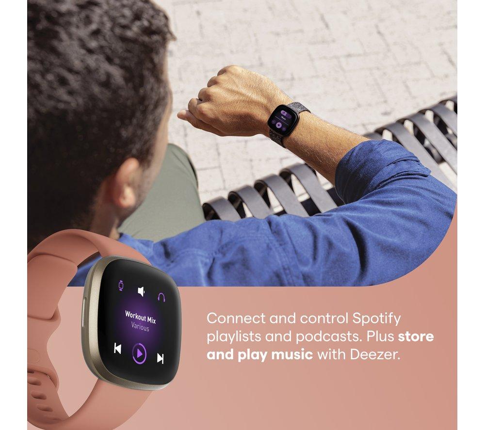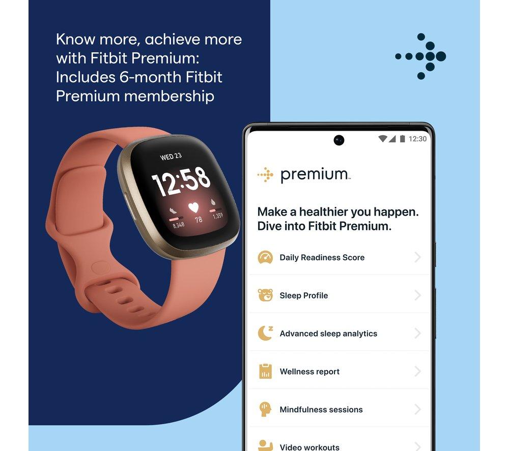 Health trackingThe Fitbit Versa 3 has plenty of ways to help you track your health. You can monitor your heart rate while you're exercising or resting, perfect for keeping track of trends.There are guided breathing sessions that help you to find a bit of peace during busy days. You can also log your food to keep track of eating habits, or get a better understanding of your cycle with female health tracking.Sleep peacefully with the sleep monitoring - it can tell you all about your sleep stages and sleep scores, and wake you gently with silent alarms.FitnessYou'll be able to track your fitness with the Versa 3. It tracks your everyday activity, including steps, distance and calories burned.When you hit the gym, it can also help you to make sure you're staying in the zone with heart rate zones and cardio fitness level tracking.This tracker is water resistant too, which means it can join you for a swim too. There are more than 20 exercise modes, and SmartTrack is there to automatically recognise the exercise you're doing.Smart featuresWant to check what's going on with your day, or what the weather's going to do? With built-in Alexa and Google voice assistants, you can control your smart devices and set reminders straight from your watch.Control your music and podcasts with a tap, or get all your phone notifications and reply straight from your wrist.With Fitbit Pay you can make payments using the Versa 3. Just save your cards to the Wallet in the Fitbit app and you'll be ready to pay for contactless payments.There's loads of apps to download too, so you'll find everything you need for everyday life.DesignWith a 6 day battery life you won't have to charge your watch as often, which means you can make the most of 24 hour health tracking.It charges quickly too - just 12 minutes of charging provides you with another 24 hours of battery life.The AMOLED display has an always-on mode, which means you can check evverything with just a glance of your wrist.