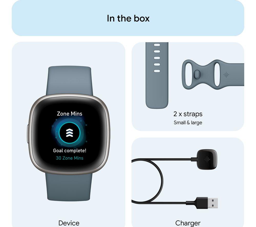 Time to hit the gym? Or maybe not? Check if you're ready for a workout or a recovery day with Daily Readiness Scores on the Fitbit Versa 4. It uses insights such as activity, sleep, and heart rate so you can stay more in tune with your body. You'll get suggested workouts and a daily Active Zone Minutes goal. You're bound to find something you love – or love to hate – with over 40 exercise modes, including strength training, golf, and kayaking.Good to know- Built-in GPS tracks your real-time pace and distance while outdoors – so you can leave your phone behind- You can use your favourite Google apps like Google Maps and Google Wallet- Designed to be thin and lightweight, so you'll barely notice you're wearing it- 6+ days of battery will see you through most of the week – get another day's worth with a quick 12 minute charge- Amazon Alexa is built-in, so you can ask questions, set alarms, check the weather, and more_________________________________________Please note: Google apps are coming soon.