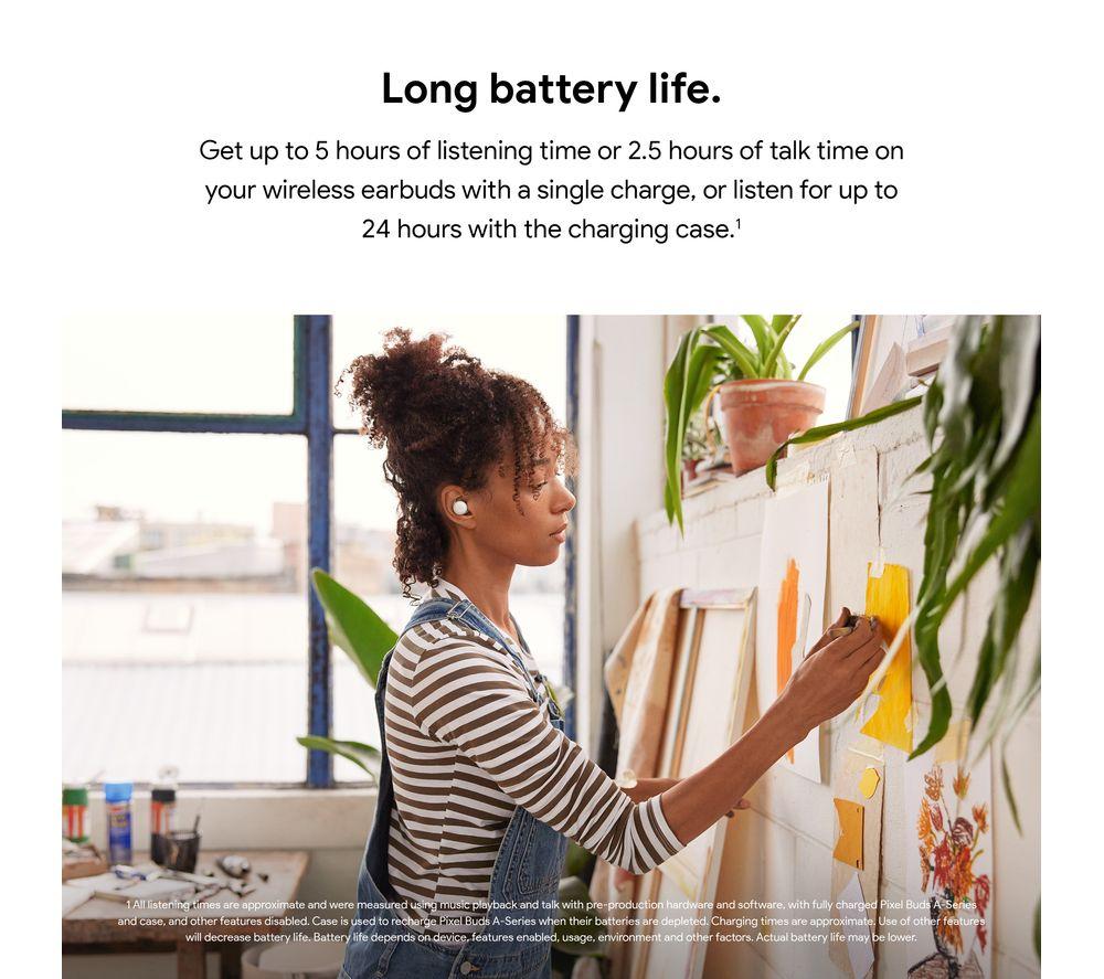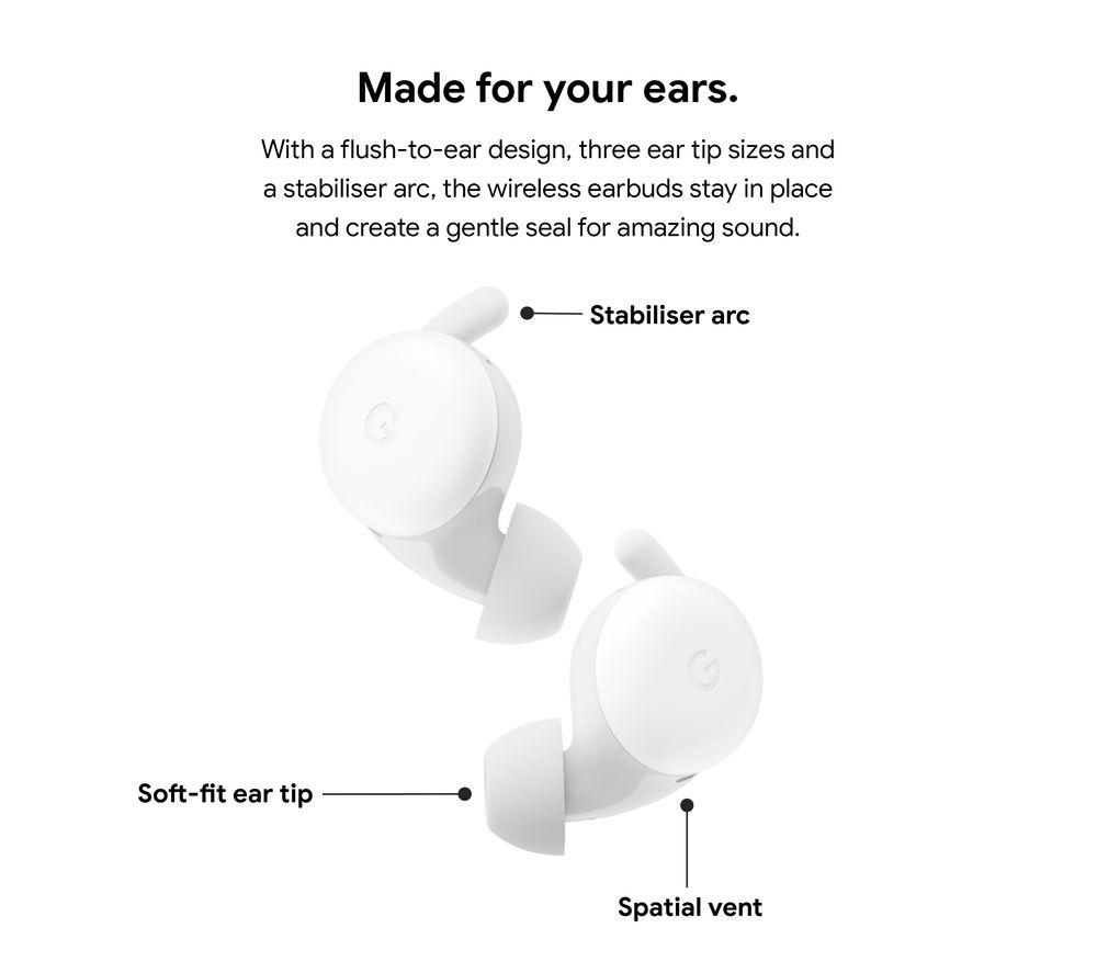 Great sound with no cables Get the most out of your music with the Google Pixel Buds Wireless Bluetooth Earphones. Connect seamlessly with Bluetooth and enjoy wireless freedom. Plus, they'll pair with your Pixel phone with just a tap. The custom-designed 12 mm dynamic drivers provide rich, high-quality audio to work their magic on your playlist. So you can enjoy your songs the way they were meant to be heard - with deep bass and clear vocals. Take calls wherever you are Enjoy crystal-clear hands-free calls - even when it's windy. The beamforming mics and voice accelerometers focus on your voice to eliminate background noise. So Grandma can hear you loud and clear. Hey Google, where am I headed? Play music, find a route or make calls without touching your phone - Google Assistant is here to help. Talking to locals on holiday has never been easier. Whether you're ordering dinner or asking for directions, the Google Pixel Buds provide real-time translation right in your ear.