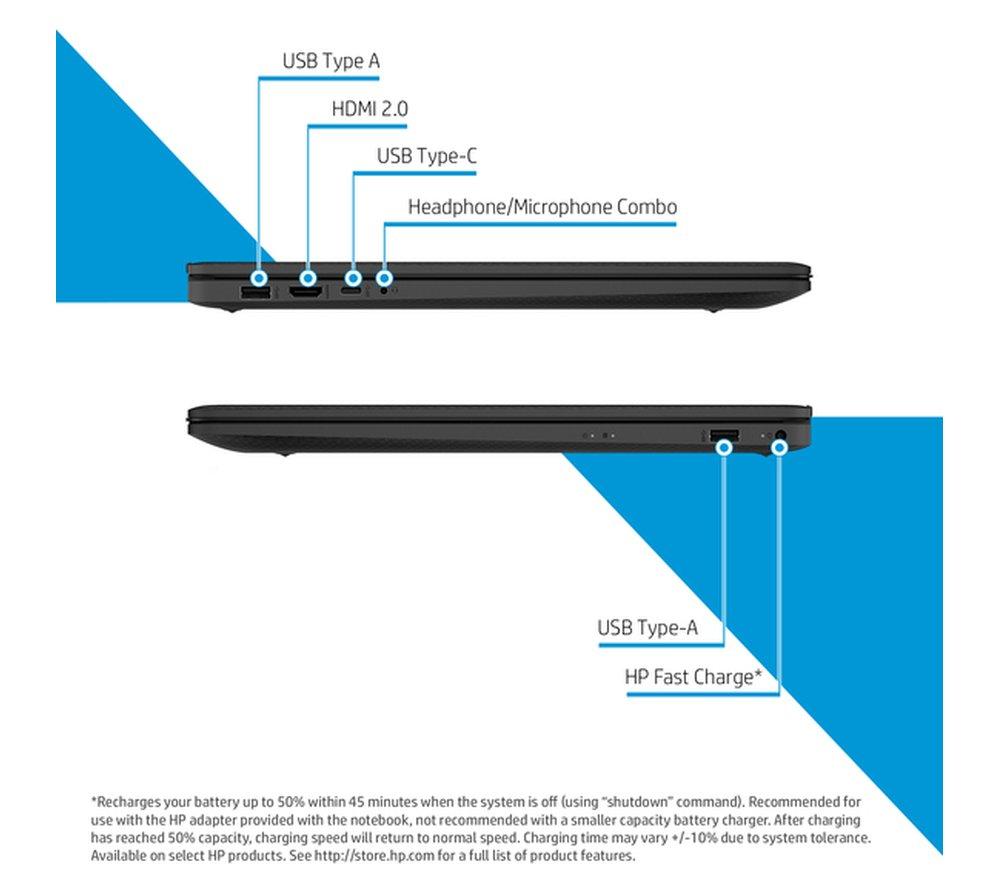 What we love - An 11th gen Intel® Core i3 processor can handle all your everyday programs for writing and editing documents, browsing the web and multitasking - With up to 8 hours of battery life you can go around without the charger most of the day - and when you charge, you'll get 50% in less than an hour thanks to HP Fast Charge Good to know - Whether you're video calling family or catching up with a compelling series, the 17.3\
