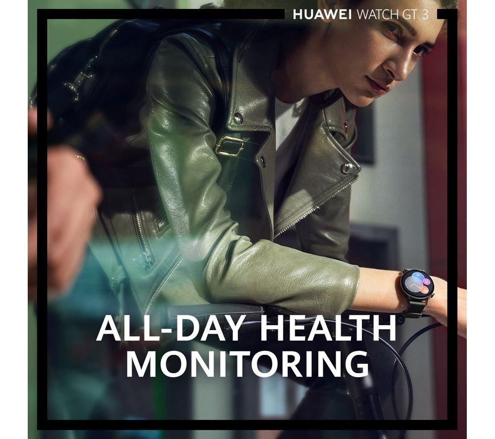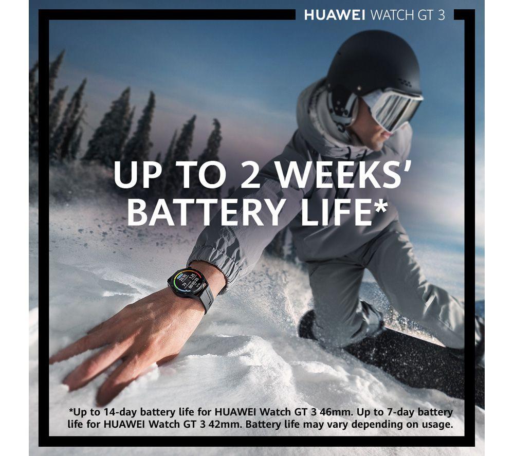 Perfect if you're always on the move, the Huawei Watch GT 3 Active has an impressive 7-day battery life. The Watch GT 3 precisely tracks your heart rate, sleep, and more - all available to view on the ultra-clear 1.32\