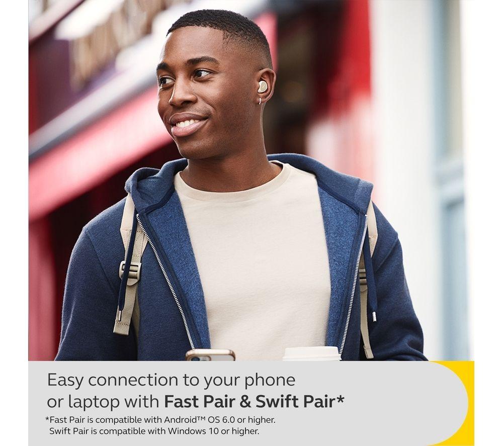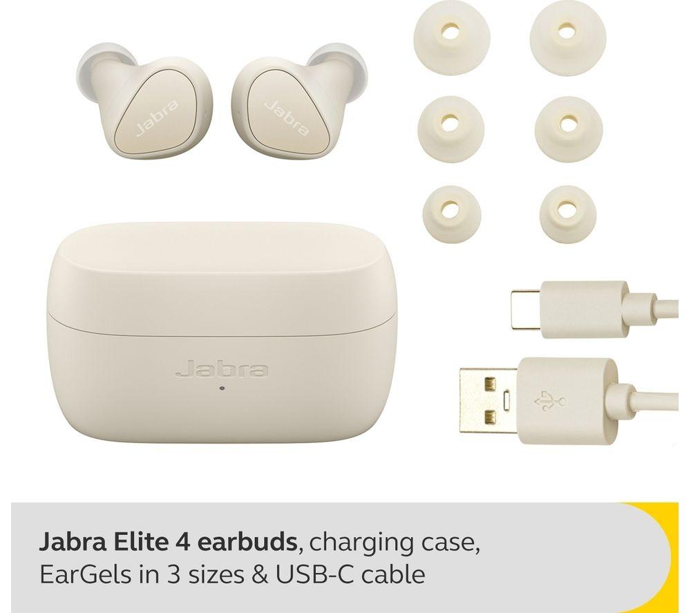 The Active Noise Cancelling (ANC) on these Jabra Elite 4s shuts out the hustle and bustle around you - it's just you and your music with no annoying distractions. The compact design fits snugly in your ears so you can run, jump or dance freely without them falling out. Plus, their IP55 rating means they're sweat and water resistant, so they won't let you down if the weather takes a turn for the worse. And with Bluetooth Multipoint, they'll switch seamlessly between two devices – go from watching a movie on your laptop to taking a call on your phone.Good to know- Connect to your Android device or PC in seconds thanks to Fast Pair and Swift Pair- With 4 microphone technology, you'll be heard loud and clear on your calls, even on a busy train or street- You get up to 22 hours of battery when combined with the charging case – turn off ANC for a whopping 28 hours- Listen in Mono mode with just one earbud when you need to keep an ear to the ground- Use the Jabra Sound+ app to fine tune the settings to your liking – crank that bass when you're working out