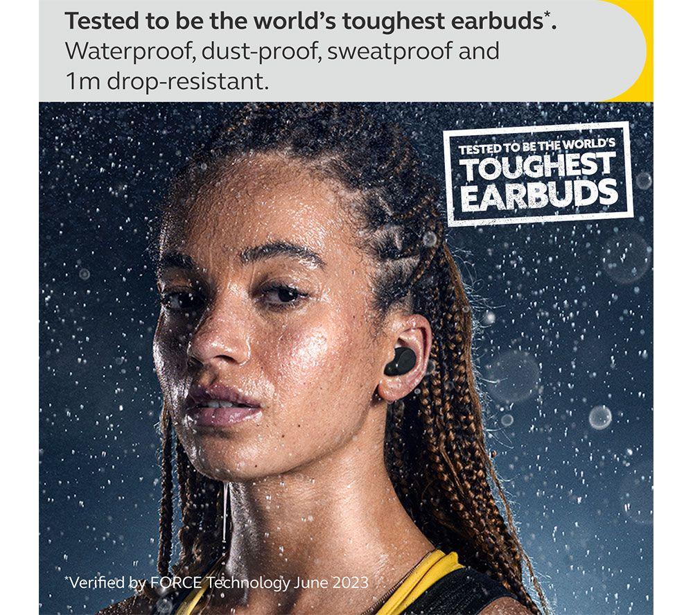 The Jabra Elite 8 Active are made of tough stuff. They've even been put through their paces with military-grade testing, proving they can stand up to the harshest environments. From extreme heat to shock impact, dust storms to water exposure, these earbuds are as tough as they come. Jabra's ShakeGrip design means they stay snugly in place, even without ear wings. Sprint for that bus or run that extra mile – they won't budge! They also come equipped with Adaptive Hybrid Active Noise Cancellation (ANC) technology. It tunes out the world around you, giving you crystal-clear sound whether you're jogging through a park or taking a call on a bustling platform.Good to know- Sound feels like it's happening all around you with Spatial Sound powered by Dolby Audio – it makes movies and games much more immersive- Prefer to run without your phone? These buds offer a solid and stable connection to your smartwatch, so you can carry on listening- Power through even the most gruelling workouts without a hint of battery anxiety and enjoy a solid 8 hours of non-stop music- On the move? Keep the beats flowing with the wireless charging case, which offer an extra 24 hours of power-  Six perfectly positioned microphones cleverly distinguish between background noise and your voice for crystal-clear calls on the go- Seamlessly switch between devices with Bluetooth Multipoint - go from your watch to your phone or laptop without needing to reconnect