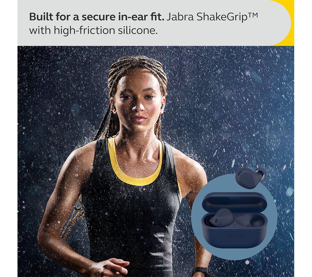 The Jabra Elite 8 Active are made of tough stuff. They've even been put through their paces with military-grade testing, proving they can stand up to the harshest environments. From extreme heat to shock impact, dust storms to water exposure, these earbuds are as tough as they come. Jabra's ShakeGrip design means they stay snugly in place, even without ear wings. Sprint for that bus or run that extra mile – they won't budge! They also come equipped with Adaptive Hybrid Active Noise Cancellation (ANC) technology. It tunes out the world around you, giving you crystal-clear sound whether you're jogging through a park or taking a call on a bustling platform.Good to know- Sound feels like it's happening all around you with Spatial Sound powered by Dolby Audio – it makes movies and games much more immersive- Prefer to run without your phone? These buds offer a solid and stable connection to your smartwatch, so you can carry on listening- Power through even the most gruelling workouts without a hint of battery anxiety and enjoy a solid 8 hours of non-stop music- On the move? Keep the beats flowing with the wireless charging case, which offer an extra 24 hours of power- Six perfectly positioned microphones cleverly distinguish between background noise and your voice for crystal-clear calls on the go- Seamlessly switch between devices with Bluetooth Multipoint - go from your watch to your phone or laptop without needing to reconnect