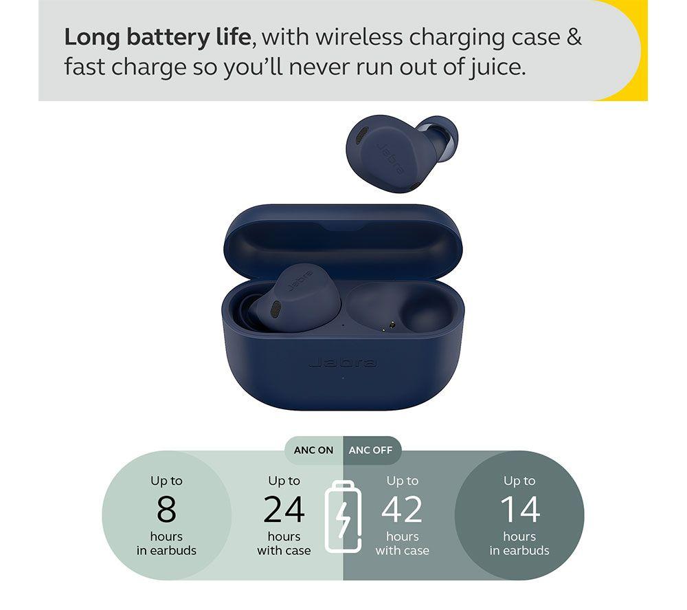 • Box contents :- Jabra Elite 8 Active Wireless Bluetooth Noise-Cancelling Earbuds- Charging case- USB cable - Set of silicone ear gels x 3- Warning leaflet- Warranty leaflet