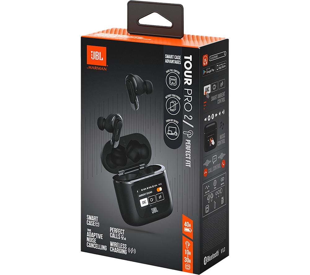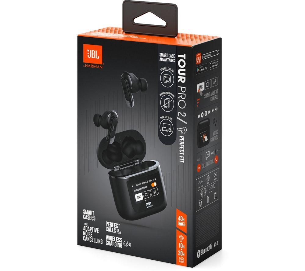 These JBL Tour Pro 2 earbuds use JBL's Deep Bass Sound to give you high-quality audio with plenty of low-end thump. You'll feel every beat of your perfectly curated playlists when you're out and about. The smart charging case has a handy screen so you can take calls, skips tracks and crank the volume without taking your phone out of your pocket. And when you need a break from the hustle and bustle, True Adaptive Noise Cancelling uses 4 noise-sensing mics to shut out the world around you. The rush hour commute has never sounded so good.Good to know- With JBL Spatial Sound, you can enjoy your music, movies and games in virtual surround sound- Smart Ambient technology lets you choose how much ambient sound you let in – perfect when you're listening out for your train- The 6-mic crystal call algorithm means you'll be heard loud and clear on your calls, even when it's blowing up a storm outside- With 10 hours of battery and an extra 30 hours in the charging case, the tunes never have to stop – that's one hell of a playlist- Need a quick boost? Speed charge for just 15 minutes and get an extra 4 hours of battery- It works with Amazon Alexa and Google Assistant so you can check the weather or the footy scores using just your voice
