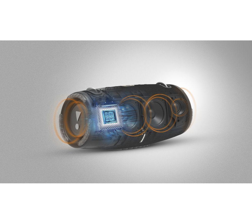 Listen all day  Bring a party-proof music setup wherever you go with the JBL Xtreme 3 Portable Bluetooth Speaker. This new generation features even more power, updated Bluetooth and lighter weight while offering better protection at the same time. With a battery that can last up to 15 hours on a single charge, the JBL Xtreme 3 is ideal for days in the park, festivals and adventures. Passive bass radiators can be seen on both sides of the unit, so you're able to hear the percussion and bassline exactly as the producer intended, even outdoors.  And if you're out for the whole day, the USB port makes a handy charging station for your phone or tablet. Keep the music going without worrying about drained devices.  Pair two devices  Sometimes it's nice to sit back and discover what your friends have been listening to. The JBL Xtreme 3 lets you do just that with Bluetooth 5.1 connectivity. You're able to connect two phones at the same time, so you can either take a break at the controls or take turns supplying the tunes with a friend.  Connect over 100 speakers  Amplify your Xtreme 3 listening experience thanks to the JBL PartyBoost app. As well as simplifying the setup process, it's great for adding speakers to your party and making the sound that much more immersive. With the ability to add over 100 speakers, you'll never find the sound falling flat.  Take your speaker to the pool  Whether you're at the beach, by the pool or exploring, you don't need to worry about shielding your JBL Xtreme 3 Portable Bluetooth Speaker from the elements. An IP67 rating means that your speaker will sound glorious even if it gets dropped in water a metre deep. So, splashes and spills will never rain on your parade.