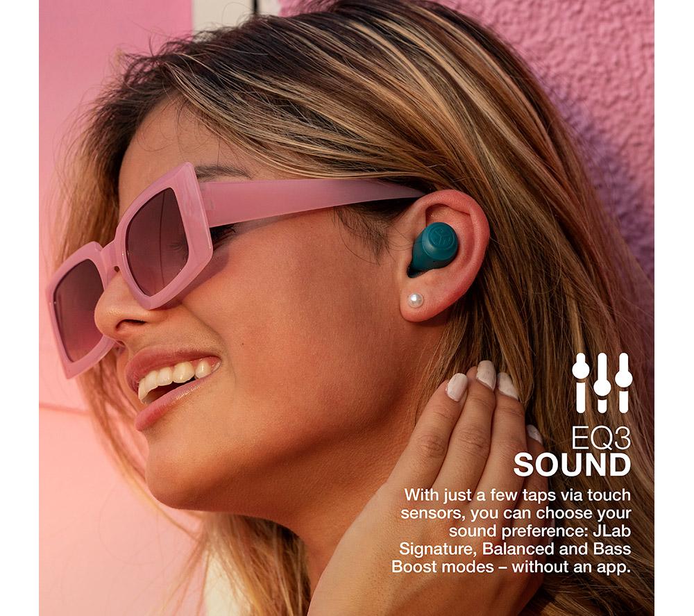 Good to know - With these JLAB wireless earbuds you can enjoy your music for up to 32 hours - 8 from the buds and 24 from the case - The charging case is tiny, lightweight and has a built-in USB cable, so it'll all fit nicely in your pocket - By tapping the earbuds you can cycle through 3 EQ modes to suit your playlist - no app necessary - The touch controls let you change volume, control music or calls, and summon your voice assistant - Thanks to the IPX4 rating you can be sure that the earbuds will survive a rainy day or a sweaty gym session - You can use just one earbud and leave the other one in the case - handy for phone calls