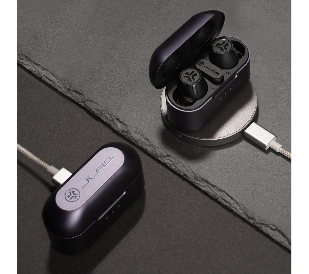 These JLab Epic Lab Edition buds take music seriously. Very seriously. Hybrid dual drivers belt out a symphony of well-balanced, crystal-clear sound. Think rich bass and sublime highs. They're even tuned to the Knowles Preferred Listening sound curve – that's the tonal response curve we humans enjoy most when listening to music. Because everything sounds better in Hi-Res Audio, these buds support LDAC and AAC codecs, so you'll hear every note as clear as a bell. If the conversation next to you is spoiling your groove, switch on smart active noise-cancelling. It cleverly adapts and learns to mute the world around you so you can get lost in the beat.Good to know- Pick your presets, toggle ANC, and set volume limits on the JLab app- These buds use Bluetooth LE for brilliant sound that won't kill your phone battery- Pop them in the case between listens for up to 36 hours of playtime – or even more with ANC off- The case works with QI wireless chargers (sold separately), as well as USB-C- They play and pause automatically when you put them in and take them out with wear detect- Switch between calls on your phone and videos on your tablet with Multipoint Pairing- You'll love how good games and movies sound with support for Spatial Audio- Put them through their paces with IP55 sweat and dustproofing