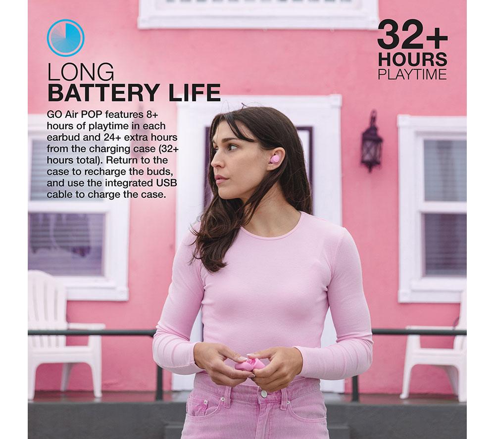 Good to know - With these JLAB wireless earbuds you can enjoy your music for up to 32 hours - 8 from the buds and 24 from the case - The charging case is tiny, lightweight and has a built-in USB cable, so it'll all fit nicely in your pocket - By tapping the earbuds you can cycle through 3 EQ modes to suit your playlist - no app necessary - The touch controls let you change volume, control music or calls, and summon your voice assistant - Thanks to the IPX4 rating you can be sure that the earbuds will survive a rainy day or a sweaty gym session - You can use just one earbud and leave the other one in the case - handy for phone calls