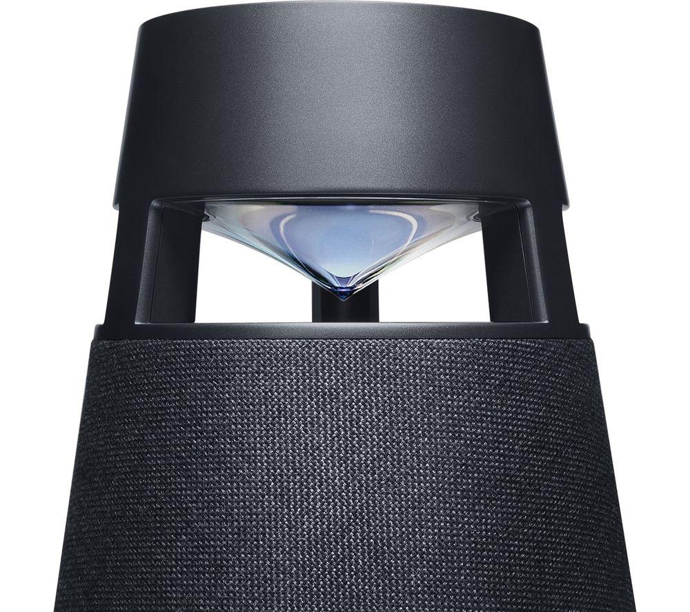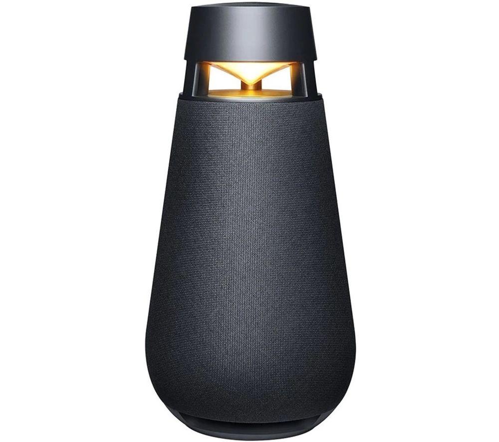 The LG XBOOM 360 XO3 is a bit different from your average Bluetooth speaker. There's no single sweet spot - the 360° design produces crisp, clear sound that reaches into every corner. Treble, mids, and bass are perfectly balanced with the 3-way speaker system. So, you get the best sound wherever you place the speaker. It's even won awards – both the iF Design Award and Red Dot Design award for its unique build. Whether you're trying to get everyone up and dancing or unwinding on a Sunday evening, you can set the vibe with mood lighting. Pick from colourful party lighting with strobe, create a cosy feel with candle effect, or bring the outdoors in with nature mode.Good to know- Premium materials, such as a silk dome and neodymium magnets, help with sound clarity and accuracy- There's no distortion on bass-heavy tracks thanks to the dual passive radiator- The battery can last up to 24 hours, so place it where you like or bring it outdoors – it's IP54 water and dust resistant too- You can pair two XO3 speakers with compatible LG TVs for a Bluetooth surround sound system