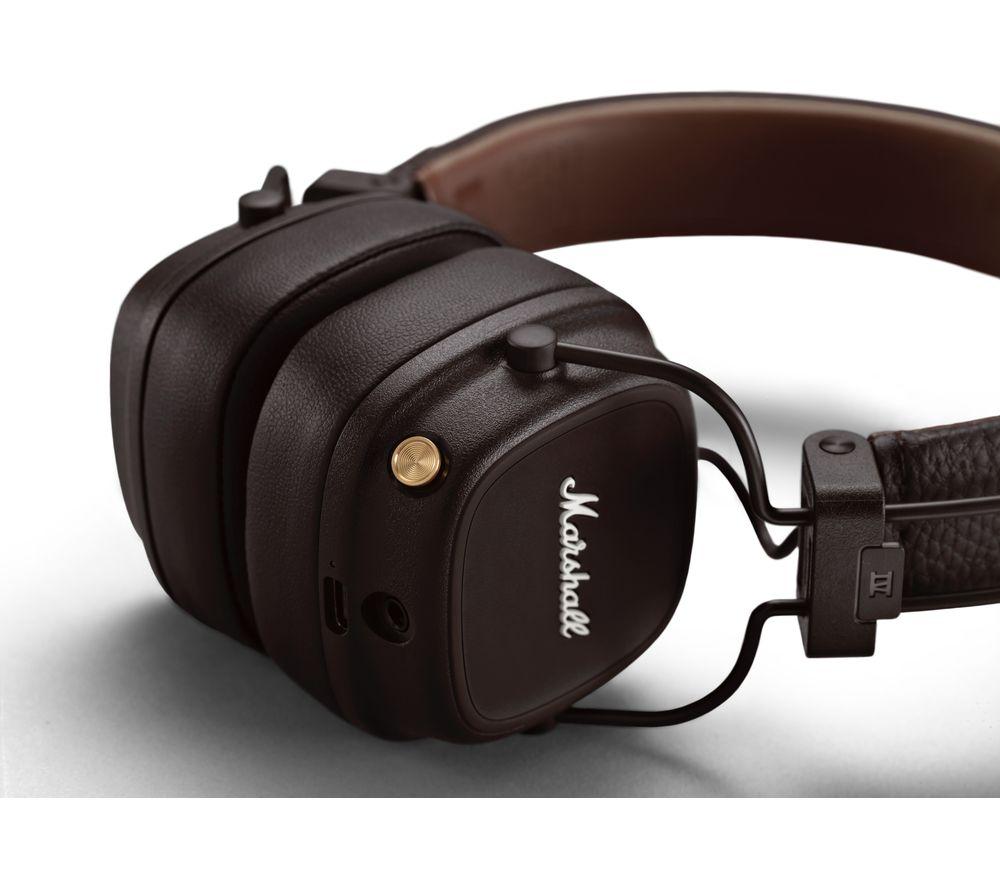 Iconic design Get lost in your music without the hassle of wires with the Marshall Major IV Wireless Bluetooth Headphones. With classic Marshall elements, such as the iconic logo and textured black vinyl, these headphones are stylish yet timeless.The ergonomic design means you can wear them comfortably for hours on end. Crisp audio experienceThe Major IV delivers enhanced bass response, smooth mids, and crystal-clear highs thanks to its custom tuned, dynamic drivers. The result is rich, detailed sound and the balance to suit any genre you listen to.Extended battery lifeWith up to 80 hours of playtime, they're built for the long haul. A quick 15 minute charge will give you up to 15 hours of battery life. You can now charge them wirelessly too (charging pad sold separately).Great for travel When you want to share your music with a friend, they can plug in their headphones into yours using a 3.5 mm jack. This way you can listen to the same music or watch the same movie on a plane.Leave your phone in your bag and use the headphones' multi-directional control knob to adjust the volume, skip tracks and more. When you're finished listening, simply fold the headphones and they're ready to be put away, with less chance of getting damaged.
