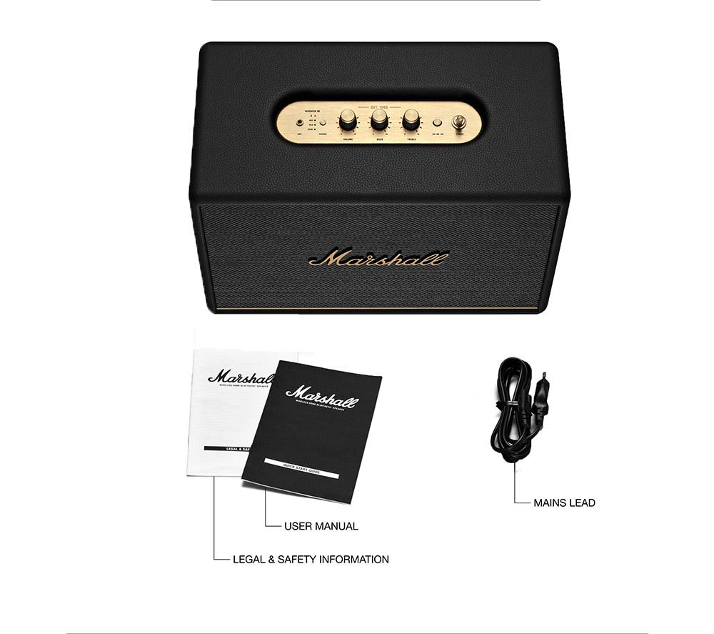 • Box contents :- Marshall Woburn III Bluetooth Speaker- Power cord- Quick start guide- Legal and safety documents