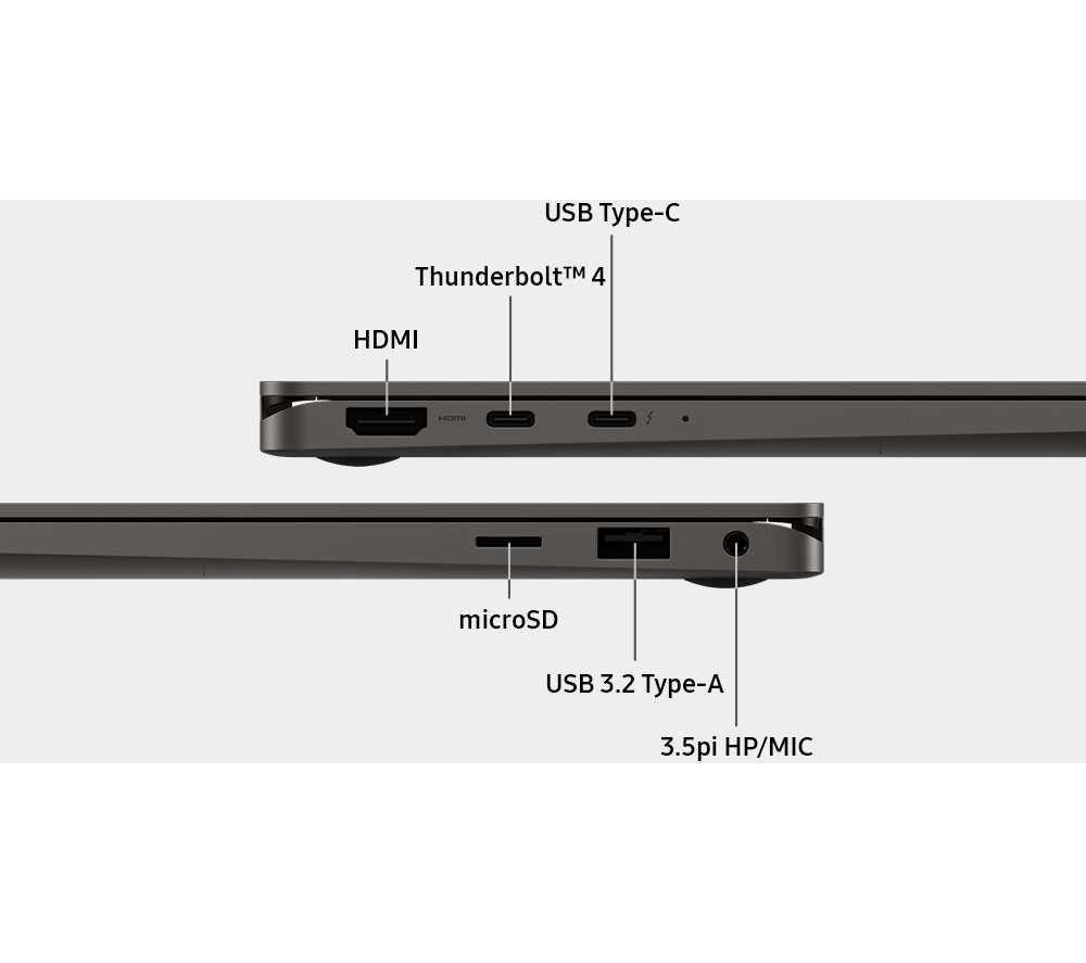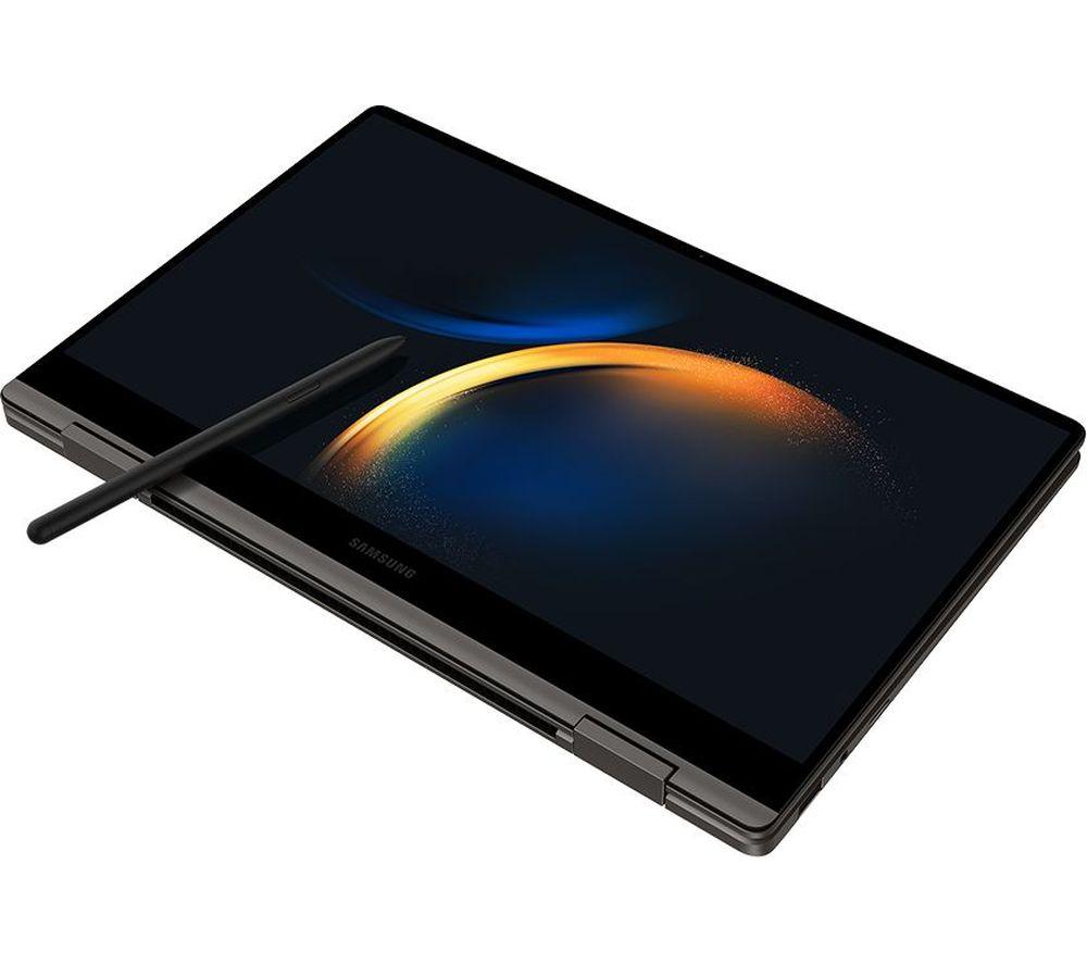 The Galaxy Book3 360 will bend over backwards to fit your style of work. Its 360° rotating hinge lets you use it as a laptop, tablet, or anything in-between. Samsung squeezed in a 13th gen Intel® Core i5 processor with 12 cores, so it will speed through your workloads. And when you're done being productive, the Full HD AMOLED touchscreen is perfect for kicking back with a movie. Crisp detail, bold colours and deep contrast – it's got it all! And with Intel® Iris® Xe Graphics on board, you can even take on creative task or blow off steam with some gaming. Good to know - Thanks to the AKG speakers with Dolby Atmos support you'll hear every footstep in your favourite show - The Full HD webcam will make you stand out on your next video call with its sharp resolution, AI noise cancelling and auto framing- The included S-Pen stylus gives you precise control over the touchscreen - great for taking handwritten notes or making drawings- The battery that will keep on going for up to 20 hours, so you can wave battery anxiety goodbye - Multitask away with 8 GB of RAM - you can switch between apps without lag - WiFi 6E means lightning-fast internet connection for smooth browsing and streaming - There're two Thunderbolt 4 ports that let you connect 8K monitors or super-fast SSDs - The laptop's incredibly thin and weighs under 1.2 kg – you'll barely know it's in your bag ___________________________________________________________________________ Intel, the Intel logo, Celeron, Intel Atom, Intel Core, Intel. Experience What's Inside, Intel Inside, the Intel Inside logo, Intel Unite, Iris, Pentium, Thunderbolt, the Thunderbolt logo, and Ultrabook are trademarks of Intel Corporation in the U.S. and/or other countries.