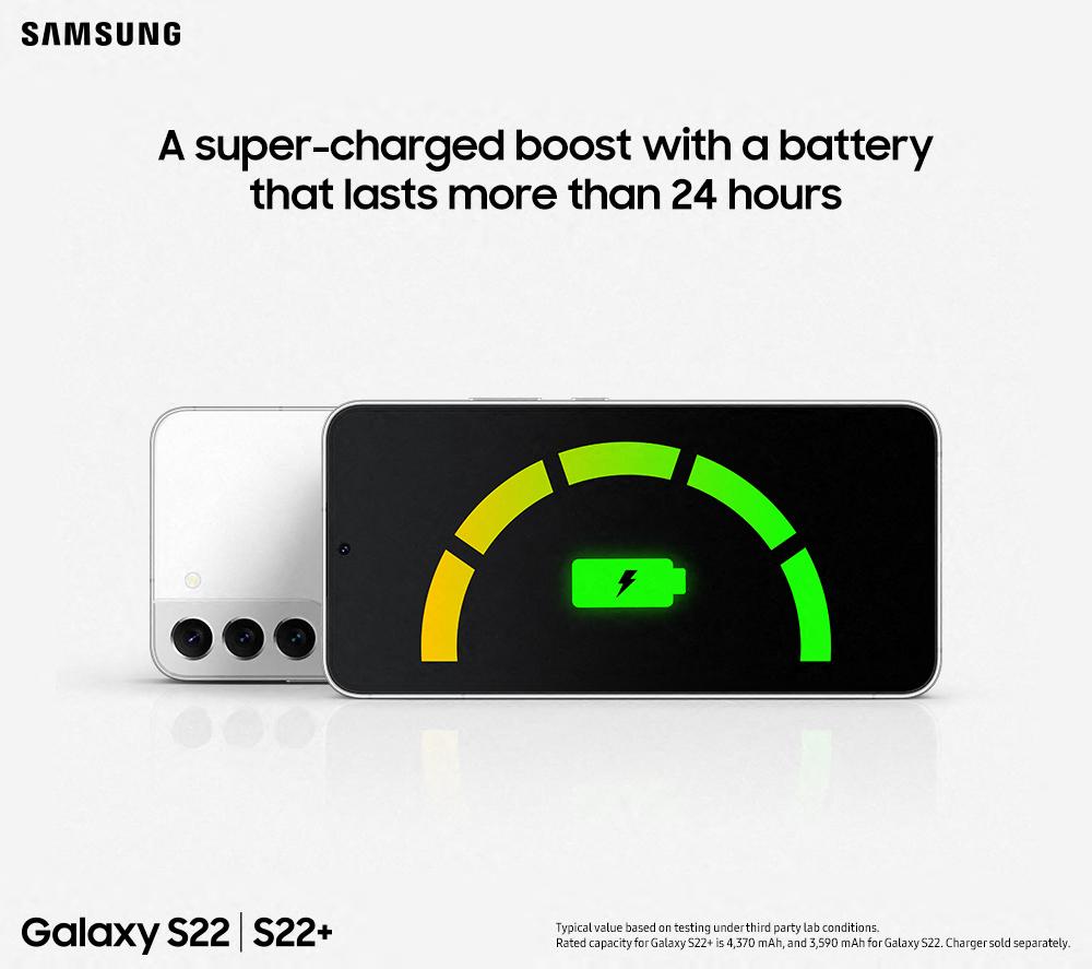 The Galaxy S22+ is packed full of top-tier specs. With an eye-catching 120 Hz AMOLED screen, a razor-sharp triple camera and ultra-fast 5G connectivity you'll have all the latest features at your fingertips.What we love- The Full HD+ AMOLED display is super bright and it can change its refresh rate to match your content, so whatever you're watching will look sharp and smooth, even in bright sunlight- With the triple rear cameras you'll never miss another photo opportunity – it's lightning fast and you can take beautiful photos day and night- The new Exynos 2200 processor and 8 GB RAM make everything fast and snappy, so you can listen, play, browse, stream, or do it all at once- 5G connectivity lets you stream films and series on-the-go – even when you're on the bus to workGood to know- You can record video in whopping 8K resolution or in 4K at 60 fps – amazing for filming YouTube videos, Insta Stories or just home videos- The 10 MP front camera lets you take crisp selfies with your friends, and jump on Zoom calls with your family- Facial recognition and fingerprint scanning keeps your personal files safe, secure and for your eyes only- Thanks to the AKG speakers with Dolby Atmos, the movies you watch will sound as good as they'll look- The 4500 mAh battery will easily see you through the whole day, and with fast charging you can top it back up in no time- The phone is waterproof down to 1.5 metres - splashes or rain showers don't need to worry you- With Android 12 and Samsung's new One UI you'll have a clean and friendly operating system that's ready to adjust to your needs- 256 GB of internal storage gives you plenty of space for all your important apps, photos and videos