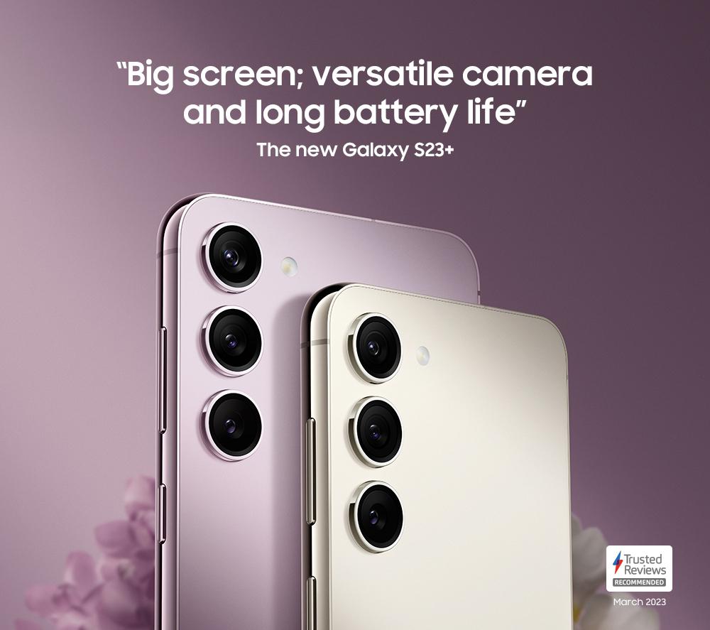The Galaxy S23+ has got your back, day and night. With the 50 MP triple rear cameras you can always pick the right lens to get the perfect photo. From super-wide landscapes to tiny details. And because some of the best memories are made after sunset, Nightography lets you take clear pics, even in the dark. The Full HD+ AMOLED display is huge and a treat to look at – perfect for binging TV shows. Its 120 Hz refresh rate and stunning colours make movies and games come to life in your hands. It's super bright too, so it even looks great in direct sunlight. The massive 4700 mAh battery will make sure you don't run out of juice before the day is over. And to make the S23+ even smarter, there's Galaxy AI. It's at your service 24/7 to help with everything from the small things to the big tasks.Good to know- With Photo Assist you can move subjects, remove distractions and so much more with just a few taps- Break down language barriers during calls - Live Translate lets both people speak and hear their own language- Note Assist spits out bite-sized summaries of long articles in seconds, so you can read more in less time- Where's that sweater from? Circle to Search with Google lets you search objects in your photos just by circling them- The Qualcomm 8 Gen 2 Processor will easily power through any app or game- With 8 GB of RAM you can multitask in several apps at once without slowdowns- 5G connectivity lets you stream films and shows on-the-go – even when you're on the bus to work- You can record video in whopping 8K resolution or in 4K at 60 fps – your videos have never looked so crisp- The 12 MP front camera is perfect for selfies with your friends, and Zoom calls with your family- Facial recognition and fingerprint scanning keeps your personal files safe, secure and for your eyes only- Thanks to the AKG speakers with Dolby Atmos, the movies you watch will sound as good as they'll look- With 45 W Super Fast Charging and wireless charging, you've got plenty of ways to top up the battery- You can wirelessly charge your gadgets from the phone with Wireless PowerShare- Splashes or rain showers don't need to worry you – the S23+ has an IP68 rating