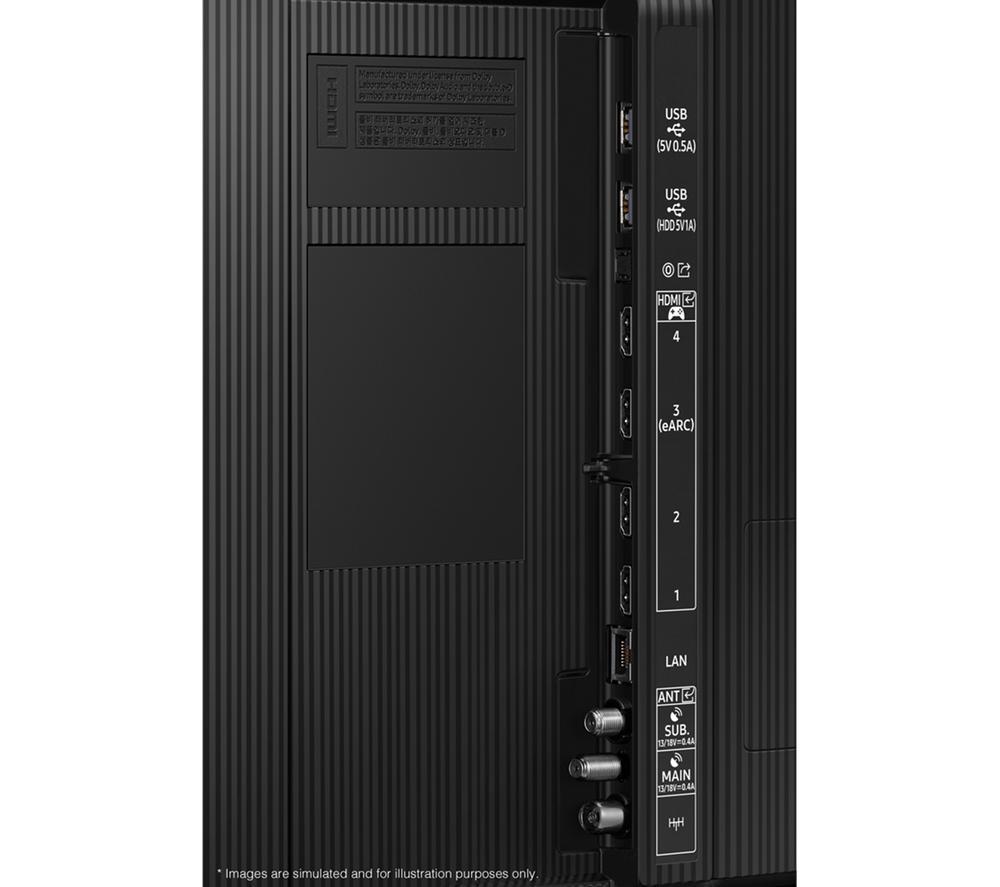 Your content gets the VIP treatment with this Samsung TV. Quantum Dots transform light into lifelike, accurate colour for natural looking scenes. The sky is brighter, the grass is greener, and the details are clearer. It's even been given the thumbs up by Pantone (and they know a thing or two about colour). The Neural Quantum Processor 4K is the brain of the TV. It optimises the brightness, contrast, resolution and sound of everything you watch into 4K. It's able to do this on the fly using AI and 20 neural networks while learning all the time. Clever, right? And Quantum HDR+ throws you right into lifelike action and lets you see every little detail in mind-boggling clarity - those movie monsters just got a whole lot scarier.Good to know- With Direct Full Array, annoying halos are a thing of the past - instead you get the perfect balance of bright whites and dark blacks- Dolby Atmos uses the TV's speakers to create an immersive surround sound effect – you'll love how incredible everything sounds- Get the most out of your next-gen console with Motion Xcelerator Turbo Pro – you won't miss a moment thanks to a 120 Hz refresh rate and ultra-low input lag- The Boundless Design is made to look good from any angle with nearly no bezel and a clean back- Get binging on a huge collection of films, TV shows, and all your favourite catch-up apps on Samsung's smart TV platform- Cartoons, classic movies and even the nightly news get an upgrade to glorious 4K thanks to AI Upscaling- Every seat is the best seat in the house thanks to the anti-glare screen with ultra-wide viewing angle________________________________Please note: - Samsung Account required to access network-based smart services and apps. If you choose not to log-in, you will only get connection to terrestrial TV (applicable to devices with tuners only) and external devices, e.g. via HDMI. - Some apps & services (including tuner) are only available in the UK. Apps & services may be removed or no longer supported by third party content providers at any time. Some apps & services may not be available at launch and may require a firmware update before becoming available. Some services require an account and/or subscription fee.