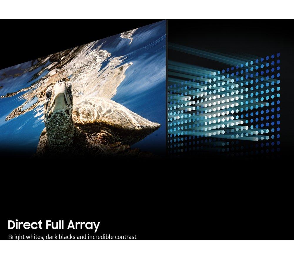 Your content gets the VIP treatment with this Samsung TV. Quantum Dots transform light into lifelike, accurate colour for natural looking scenes. The sky is brighter, the grass is greener, and the details are clearer. It's even been given the thumbs up by Pantone (and they know a thing or two about colour). The Neural Quantum Processor 4K is the brain of the TV. It optimises the brightness, contrast, resolution and sound of everything you watch into 4K. It's able to do this on the fly using AI and 20 neural networks while learning all the time. Clever, right? And Quantum HDR+ throws you right into lifelike action and lets you see every little detail in mind-boggling clarity - those movie monsters just got a whole lot scarier.Good to know- With Direct Full Array, annoying halos are a thing of the past - instead you get the perfect balance of bright whites and dark blacks- Dolby Atmos uses the TV's speakers to create an immersive surround sound effect – you'll love how incredible everything sounds- Get the most out of your next-gen console with Motion Xcelerator Turbo Pro – you won't miss a moment thanks to a 120 Hz refresh rate and ultra-low input lag- The Boundless Design is made to look good from any angle with nearly no bezel and a clean back- Get binging on a huge collection of films, TV shows, and all your favourite catch-up apps on Samsung's smart TV platform- Cartoons, classic movies and even the nightly news get an upgrade to glorious 4K thanks to AI Upscaling- Every seat is the best seat in the house thanks to the anti-glare screen with ultra-wide viewing angle________________________________Please note: Some apps & services (including tuner) are only available in the UK. Apps & services may be removed or no longer supported by third party content providers at any time. Some apps & services may not be available at launch and may require a firmware update before becoming available. Some services require an account and/or subscription fee.
