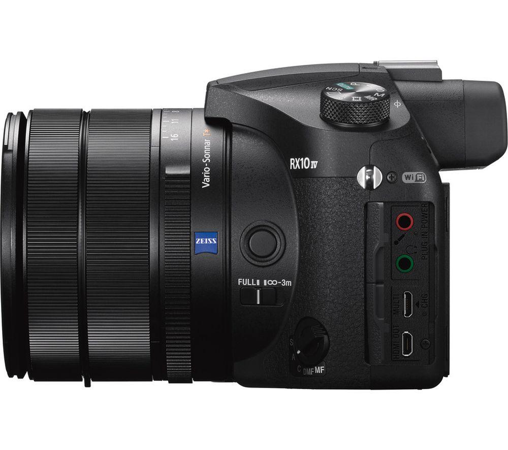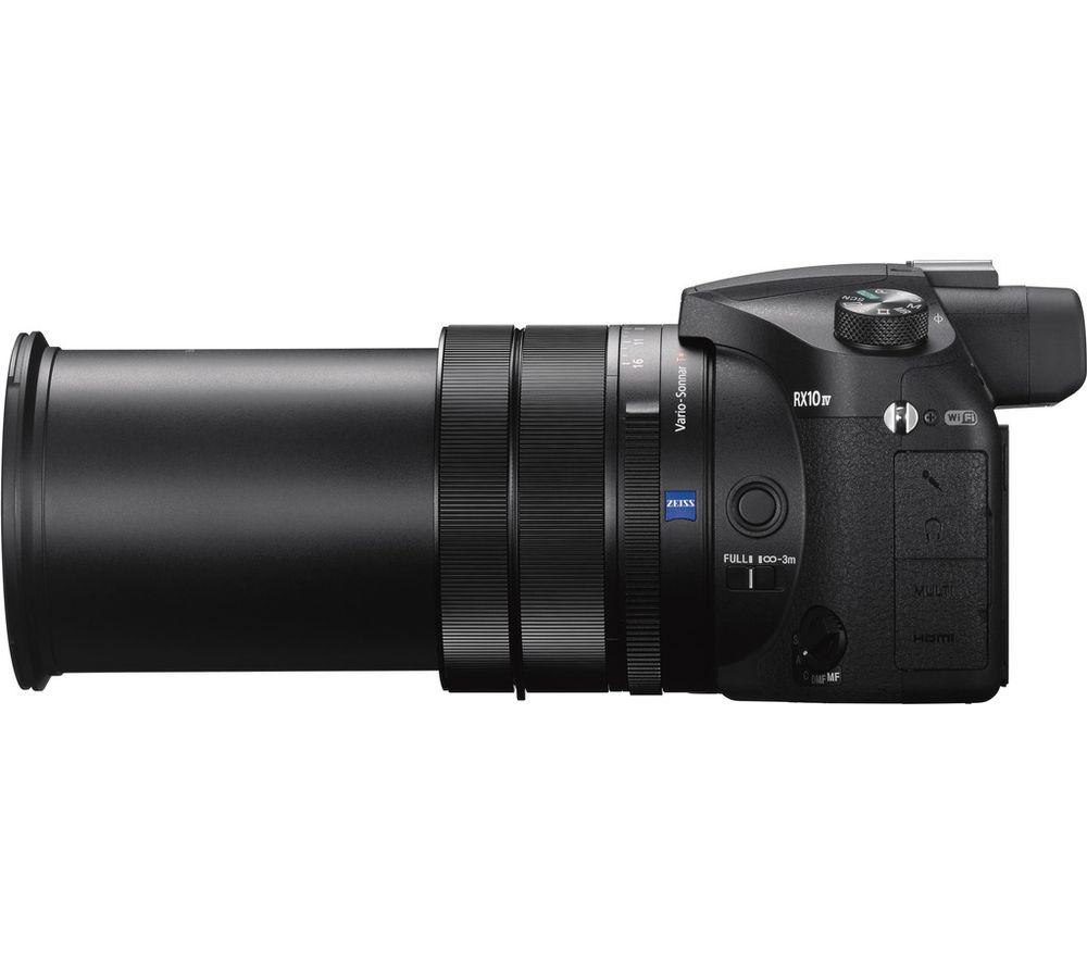 Top features:- BIONZ X processor to capture fast-moving objects clearly - Tiltable touchscreen for easy and accurate viewing - 4K movie recording to showcase your creativity - Easy connectivity for remote shooting and image transfer BIONZ X processorFaster than ever, the Sony DSC-RX10 IV High Performance Bridge Camera lets you nail quality shots with effortless speed thanks to a reliable BIONZ X processor.Along with this speed and ease, the DSCRX10M4's 20.1 megapixel CMOS sensor gives you lightning-fast, precision autofocusing and tracking so you can activate super slow motion mode and capture an erratic butterfly in the wild as though it posed just for you.Tiltable touchscreenThis Sony specialty camera has a convenient tiltable LCD to make it easy to view results as you work your magic. Tilting to approximately 109° upward and 41° downward, your shots are even easier to monitor from various positions while recording.A display panel on top of the camera lets you check key settings at a glance without moving the camera.4K movie recordingThe RX10 IV can record in 4K resolution and has a full-range of functions to help you capture and edit professional-quality footage. Both microphone and headphone sockets are built-in for recording sound.Easy connectivityControl the Sony RX10 via your phone or tablet using the Sony Play Memories Mobile app. Straightforward to connect, you can then control the zoom, shutter speed, ISO, exposure, drive mode, white balance, and the self-timer – perfect for when you need to take a step back from the camera.Make sure you've got enough memoryIt is important to have the right memory card for your camera. The memory card will determine how fast an image is saved and how fast an image is uploaded. If you're shooting high definition videos along with high resolution images then it's best to invest in a high performance memory card. A high performance memory card will get the best out of your photography, ensuring the best continuous shooting speed and high quality data capture.