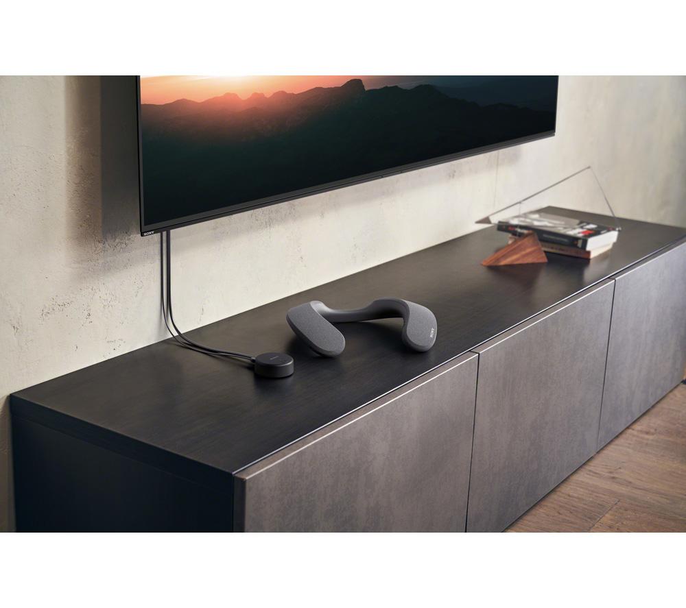 Enjoy personal cinematic experience with immersive audio, without the discomfort of headphones or booming speakers resonating throughout your home. The Sony SRS-NS7 Neckband Speaker surrounds your head with 360 Spatial Sound. What we love - Connect the transmitter to your Sony Bravia XR TV, pair with the neckband speaker wirelessly via Bluetooth and enjoy surround sound with Dolby Atmos perfectly matching what you're watching - Use the 360 Spatial Sound Personalizer app to capture and analyse your ear shape, the sound will be adjusted to get the best surround sound just for you Good to know - With IPX4 certification, you don't need to worry about sweating or spilling your drink - Roam free with 12-hours battery life and when you run out, you can get another hour from 10 minutes of charging - You can also pair with your smartphone, tablet or laptop to listen to music with compatible apps and even take calls with the built-in microphone