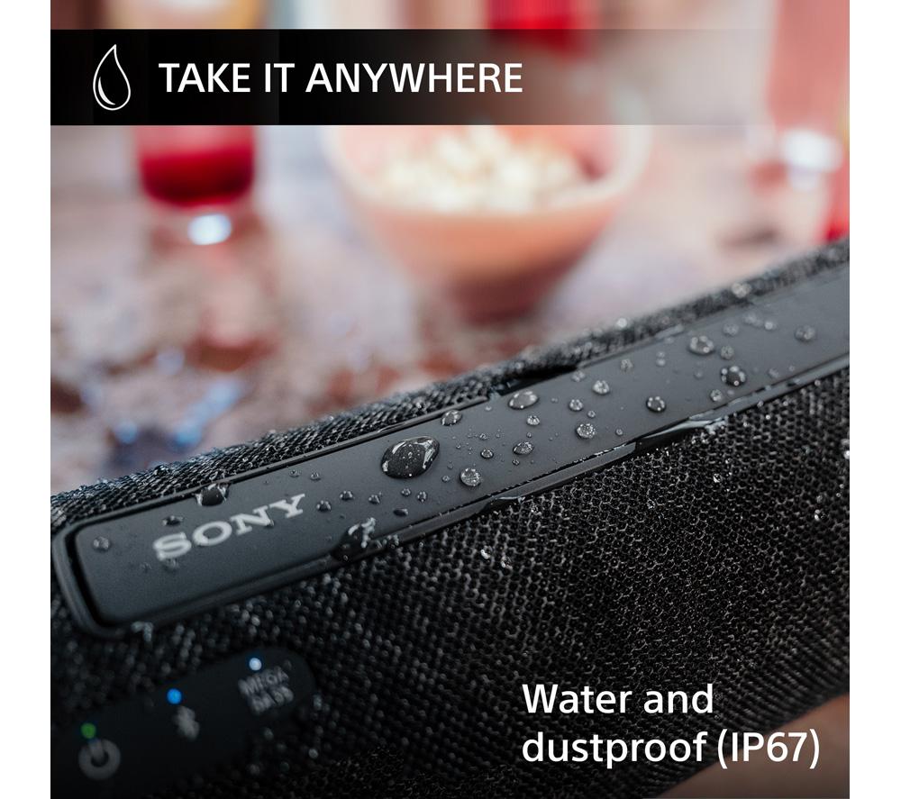 With the Sony XG300 you can turn any place into a party. Its X-Balanced speakers pump out clear sound with a wide sound stage and deep bass. If that's not enough for you, MEGA BASS lets you turn the bass up for extra punchy sound. It's also water and dust resistant, so it can keep playing no matter what happens – perfect for beach parties. Good to know - With up to 25 hours of battery life you can party day and night - You can get up to 70 minutes of play time from just 10 minutes of charging - Connect up to 100 compatible speakers with Party Connect for the ultimate whole-house party - The retractable handle makes it easy to carry around - Quickly connect 2 compatible speakers with Stereo Pair - The RGB Light Rings on the sides sync to your music to enhance the party vibe - Connecting with new devices is super easy thanks to Bluetooth 5.2 and Google Fast Pair
