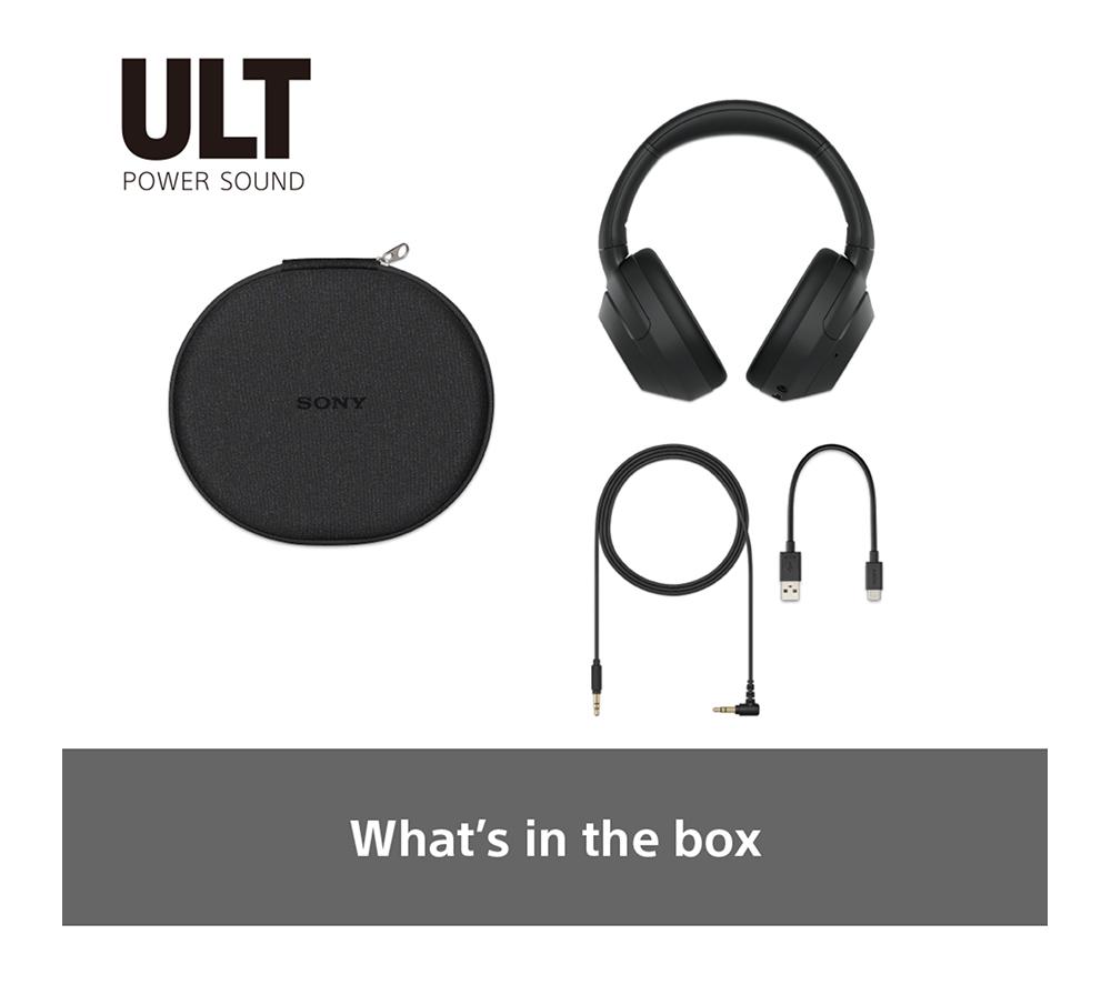 • Box contents :- Sony ULT Wear Wireless Bluetooth Noise-Cancelling Headphones - Carry case- Connection cable- USB cable - Warranty card- Reference guide