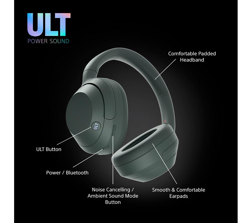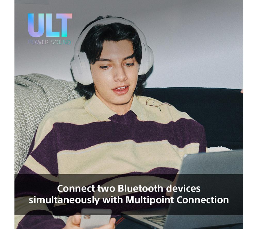 Feel the full force of your tunes with these Sony wireless headphones. The high-quality 40 mm Neodymium drivers fill your ears with powerful, dynamic sound – you'll hear every lyric, riff and beat in crystal clarity. However you like your low end, the ULT button will satisfy your bassline addiction. Choose from Deep Bass and Attack Bass modes to go from chest-thumping to teeth-rattling in a flash. Good music deserves your full attention. Active noise-cancelling blocks out annoying distractions like street noise and background chatter, so it's just your music. And when you need to be aware of your surroundings, Ambient Mode lets the world come flooding back in.Good to know- The soft earpads and smooth headband are nice and comfy so they won't get on your nerves- Come through loud and clear on your calls thanks to Sony's Precise Voice Pickup technology and beamforming mics- Go from watching a movie on your tablet to taking a call on your phone automatically with multipoint connection- Enjoy 30 hours of battery from a single charge – turn off noise-cancelling and it jumps to a massive 50 hours- Need some extra juice? Quick charge gives you 1.5 hours of use from just 3 minutes of charge- They're compatible with both IOS and Android devices and connect easily with Fast Pair and Swift Pair- When you're done rocking out, they can be folded down and stashed in the handy carry case