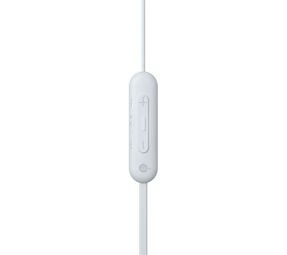 Don't let a low battery kill your song - and your mood. You can listen for up to 25 hours with the Sony WI-C100 Earphones – plenty to see you through from work to workouts. And if they're running low, a quick 10-minute charge will give you an hour of playtime.Good to know- Sony's Digital Sound Enhancement Engine (DSEE) makes music sound more natural- Tweak the audio just the way you like it with presets and EQ in the app- Tuned for balanced sound through the low and high frequencies with clear vocals- IPX4 water resistance means you can wear them in the gym