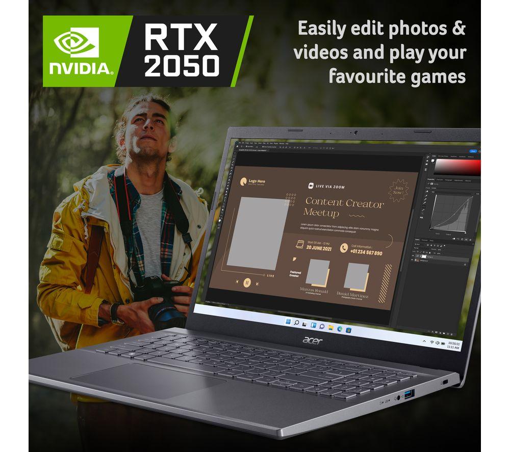 Get stuff done with the Aspire 5. The 12th gen Intel® Core i7 processor is powerful enough to handle all your apps, documents, and browser tabs. You can even get into some graphic design or casual gaming - NVIDIA RTX 2050 graphics card has got your back. And the Thunderbolt 4 port lets you connect to almost anything - from super-fast SSDs to 4K monitors.Good to know- Its 15.6\