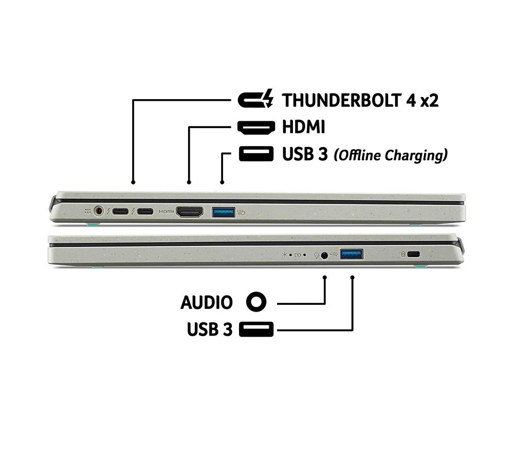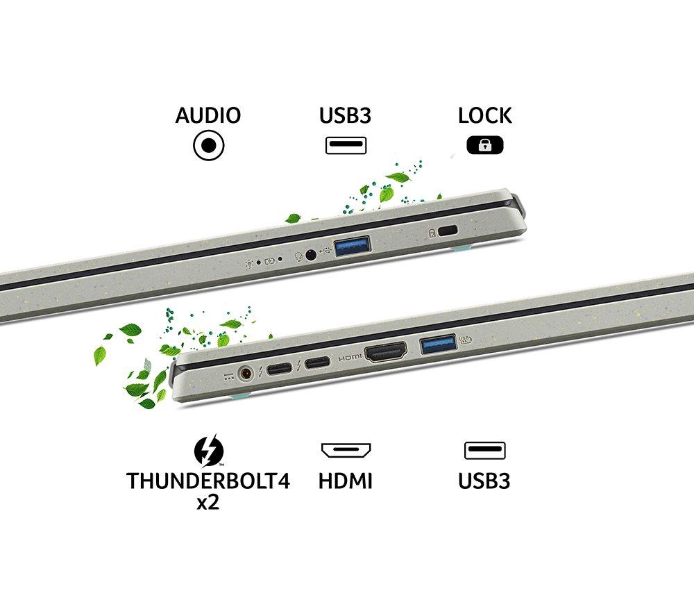 The Aspire Vero is a powerful laptop built to be kinder to our planet. The beautiful chassis is built using 30% post-consumer recycled plastic. But what's more important than recycling? Reducing and reusing - that's why the Vero is super easy to upgrade or repair. When the time comes, you can easily replace the RAM and storage, to keep the laptop snappy for a few more years. And the processor is future-proof too - the 13th Gen Intel® Core i7 CPU combines high-power performance cores and low-power efficiency cores for smooth everyday use and long battery life. Good to know - You'll have plenty of space for all your files on the speedy 1 TB SSD- 16 GB of RAM will make it easy to run multiple apps, documents and browser tabs- WiFi 6E gives you a stable Internet connection at the best speed available - The 15.6\