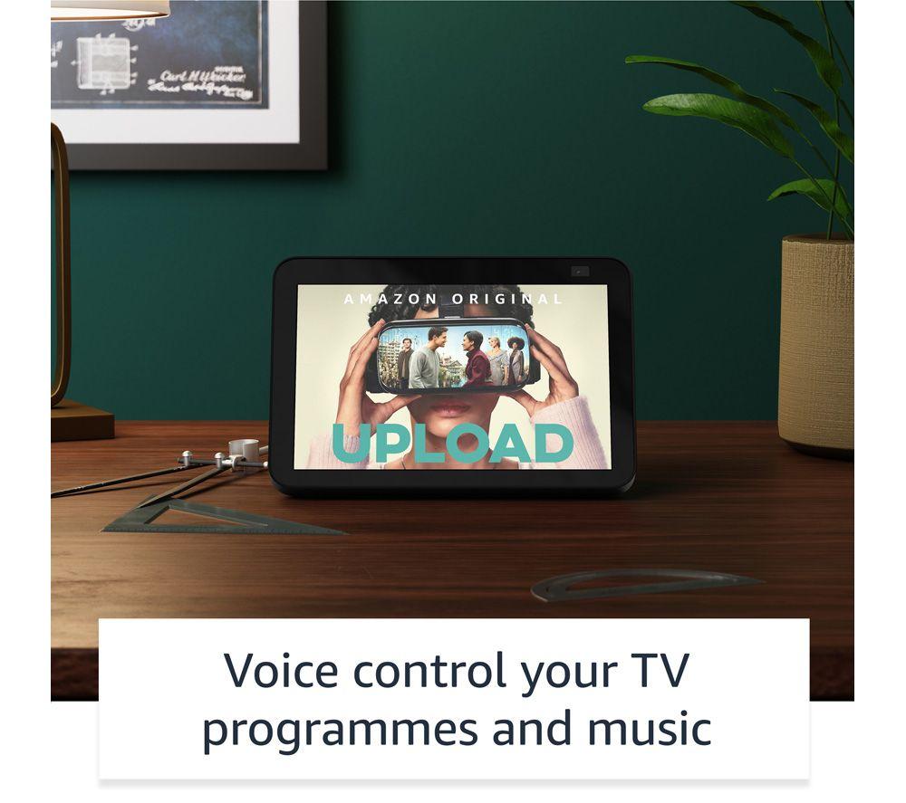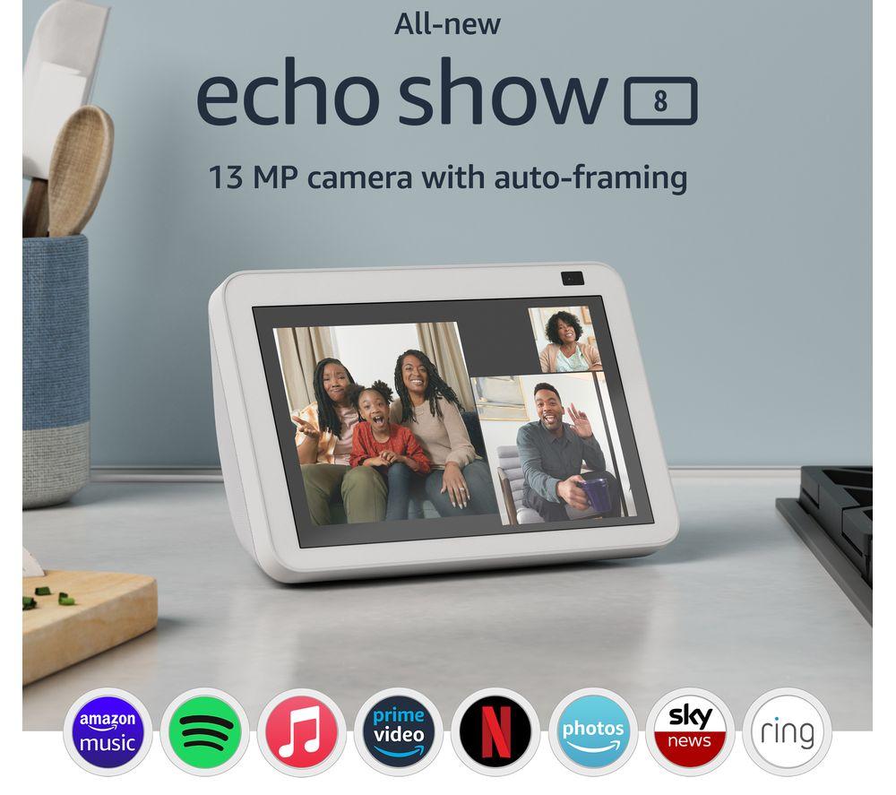See more and do more with Amazon's 2nd Gen Echo Show 8. Alexa voice assistant is built-in, so all you need to do is ask. The 8” HD touchscreen comes in oh so handy for video chats. Family and friends (with an Echo device or the Alexa app) will be able to see you clearly with the 13 MP camera and auto-framing to keep you in the centre. Simply ask Alexa to call your contacts. You can also securely access the built-in camera to check your home when you're away. Someone at the front door? It works with lots of smart doorbells and cameras, so you can see who's calling. And when you want to be entertained—you guessed it! Ask Alexa to play TV shows or films from Prime Video, Netflix and more, or music from Amazon Music, Spotify, and others.Good to know- Alexa is great for everyday stuff like reminders, timers, shopping lists, recipes, and news and weather updates- It can be paired with other Echo devices for multi-room music- Alexa has tens of thousands of skills and counting - just say “Alexa, help me get started with skills”- You can display photos from Amazon Photos or Facebook on the home screen- Personalise your Alexa Privacy settings on the app or by asking Alexa – there's a mic-off button and built-in camera cover too- Parental controls make it safe for the whole family to use – little ones can learn and have fun with Amazon Kids+ (subscription required)- It's super simple to set up – just plug in and use the Alexa app to connect to WiFi and get started- Designed with sustainability in mind, it's made from 30% post-consumer recycled plastics, 100% post-consumer recycled fabric, and 100% recycled die-cast aluminium