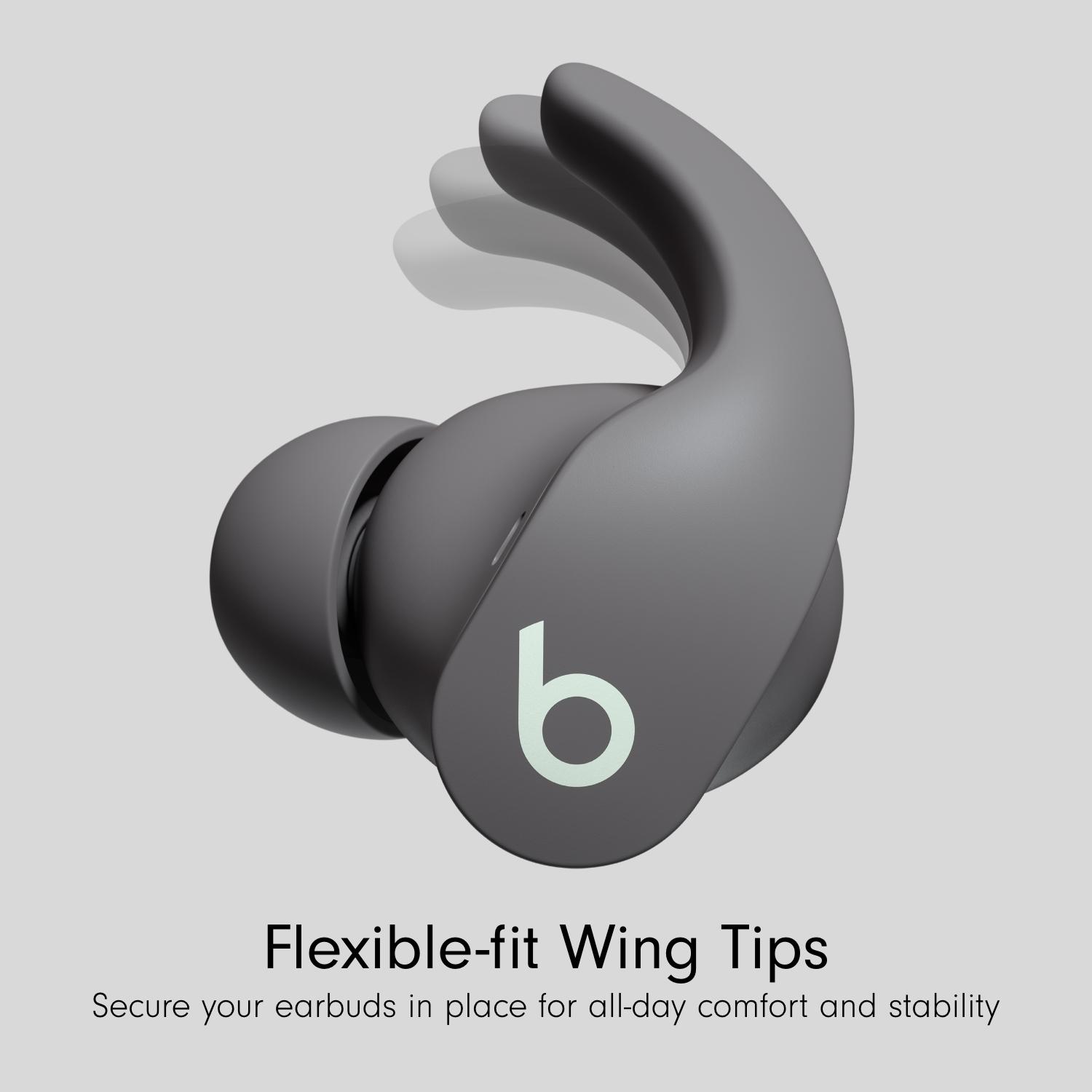 These Beats Fit Pro earbuds are the perfect companion for your active lifestyle. Music, videos, and games feel super immersive thanks to Spatial Audio with dynamic head tracking – it adjusts the sound as you turn your head, giving you the feeling of being at a concert. The flexible secure-fit wingtips are flexible will stay put during even the most intense workouts. Dive into your favourite playlists and podcasts undisturbed with active noise-cancelling which blocks out your surroundings. And when you need to listen out for your platform announcement, switch to Transparency mode to let the outside world in.Good to know - They're powered by the Apple H1 chip – effortlessly sync with all your Apple devices and go hands-free- They have 6 hours of listening time with 3 extra charges in the charging case- A 5-minute Fast Fuel charge will give you up to 1 hour of playback when you need a little extra juice – perfect for when you're heading out the door- You'll always be heard loud and clear on your calls thanks to dual beamforming mics which pinpoint your voice and cut out external noise and wind- The Beats app lets you manage one-touch pairing, customise the controls, check the battery levels and more.- On-device controls let you manage your music, toggle listening modes, take calls and active your voice assistant- The sweat and water-resistant design makes them perfect for workouts\n______________________________________________________Please note:- Compatible hardware and software required for Spatial Audio. Works with compatible content in supported apps. Not all content available in Dolby Atmos. Head tracking feature requires iPhone or iPad.- One-touch pairing requires an iCloud account and macOS Sierra, iOS 10, watchOS 3 or later versions.- Automatic Switching requires macOS 11.1, iOS 14.3, iPadOS 14.3, watchOS 7.2, or tvOS 14.3 or later.- Audio Sharing is compatible with Beats Fit Pro, Beats Flex, Solo Pro, Powerbeats Pro, Powerbeats, Solo3 Wireless, Powerbeats3 Wireless, Beats Studio3 Wireless, BeatsX, AirPods (1st generation or later), AirPods Pro and AirPods Max. Works with iPhone 8 or later and iPod touch (7th generation) with the latest version of iOS, and 12.9-inch iPad Pro (2nd generation or later), 11-inch iPad Pro, 10.5-inch iPad Pro, iPad (5th generation or later), iPad Air (3rd generation) and iPad mini (5th generation) with the latest version of iPadOS.