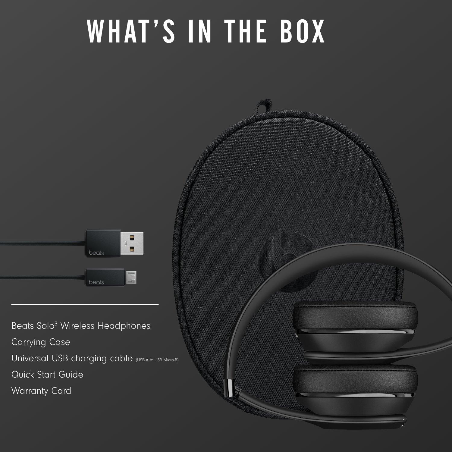 Great music deserves great sound. These Beats Solo 3 headphones' fine tuned acoustics give you better clarity and depth, so you'll hear every note of your favourite tunes as clear as a bell. But why stop at music? With Spatial Audio, you can enjoy your TV shows and movies in head-spinning surround sound, wherever you go. It'll feel like you've been dropped slap bang in the middle of the action. And the on-ear cushioned ear cups are adjustable so you can rock and roll all day in comfort and style.Good to know- The powerful Apple A1 chip gives you up to 40 hours of battery life – that's one hell of a playlist- Need a boost? With Fast Fuel, a quick 5-minute charge gives you an extra 3 hours of playback- Take calls, skip tracks and activate Siri with the multifunction on-ear controls- You'll be heard loud and clear on calls, even when you're in a busy environment, thanks to the beamforming mic- When you're done jamming, the headphones can be folded down and stored in the included carry case- They connect easily to your Apple and Android devices – just power on and hold them near your phone or tablet
